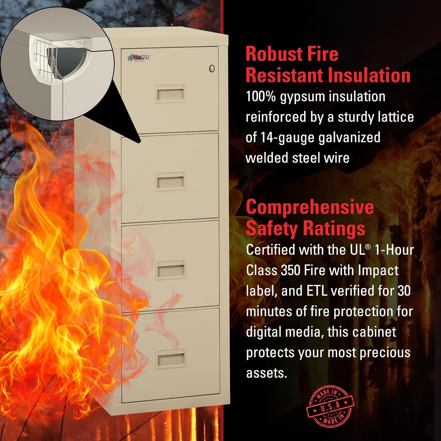 - Special Feature : Fire-Rated, Impact Rated, Lockable, Made in the USA, Water Resistant