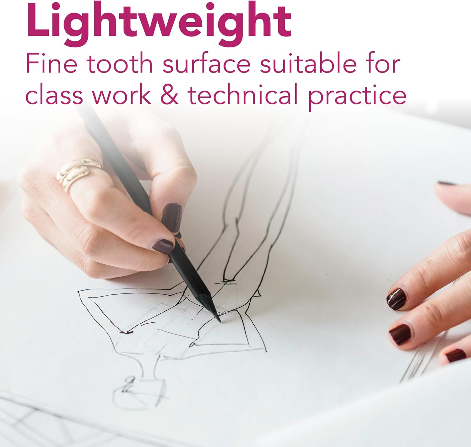 - General Purpose & Lightweight - Tackle sketch projects like figure drawing, illustration, and character design without worry of unsightly tears or creases; paper has a fine texture to grip pigment from pencil and charcoal