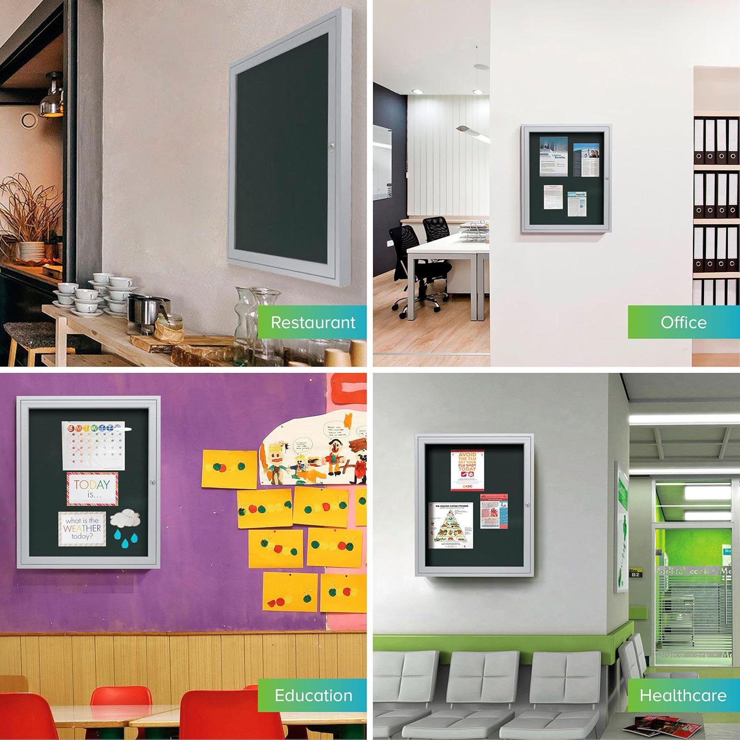 Ghent 24"x18" 1-Door Outdoor Enclosed Vinyl Bulletin Board, Shatter Resistant, with Lock, Satin Aluminum Frame - Ebony (PA12418VX-183), Made in the USA