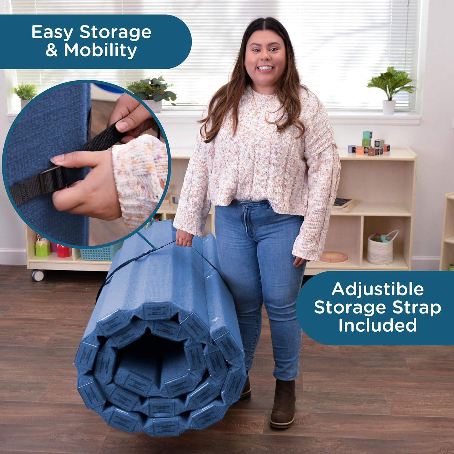 Children’s Factory 48" x 10' Quiet Divider With Sound Dampening Panels, Freestanding Room Divider Wall, Blueberry