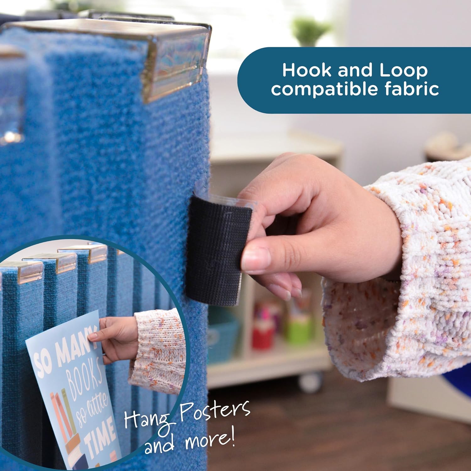 - MULTIFUNCTIONAL PRIVACY SCREEN: Compatible with hook-and-loop fasteners, this room divider screen doubles as a display surface for artwork, educational materials, or student projects, providing both functional room separation and interactive classroom features.