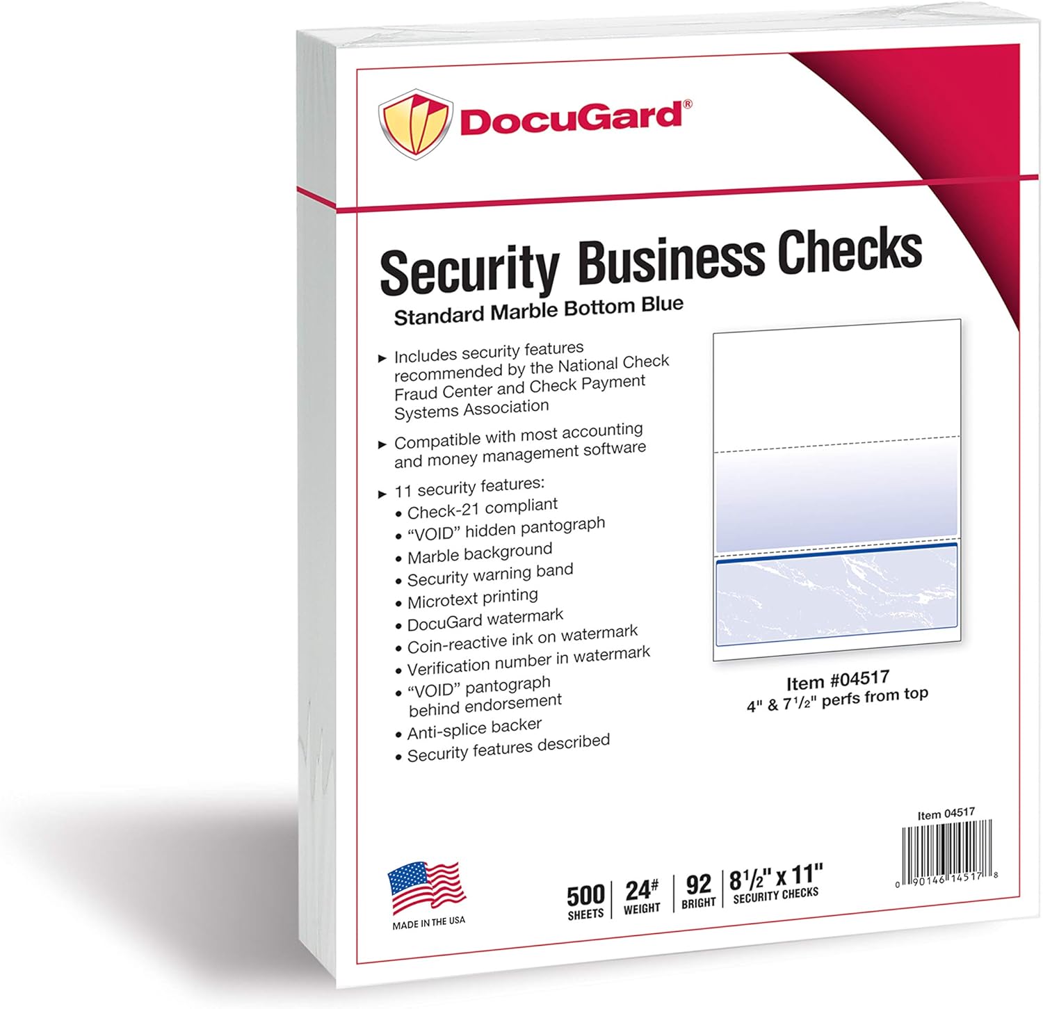 DocuGard Standard Security Check, 11 Features, 8.5 X 11, Blue Marble Bottom, 500/ream