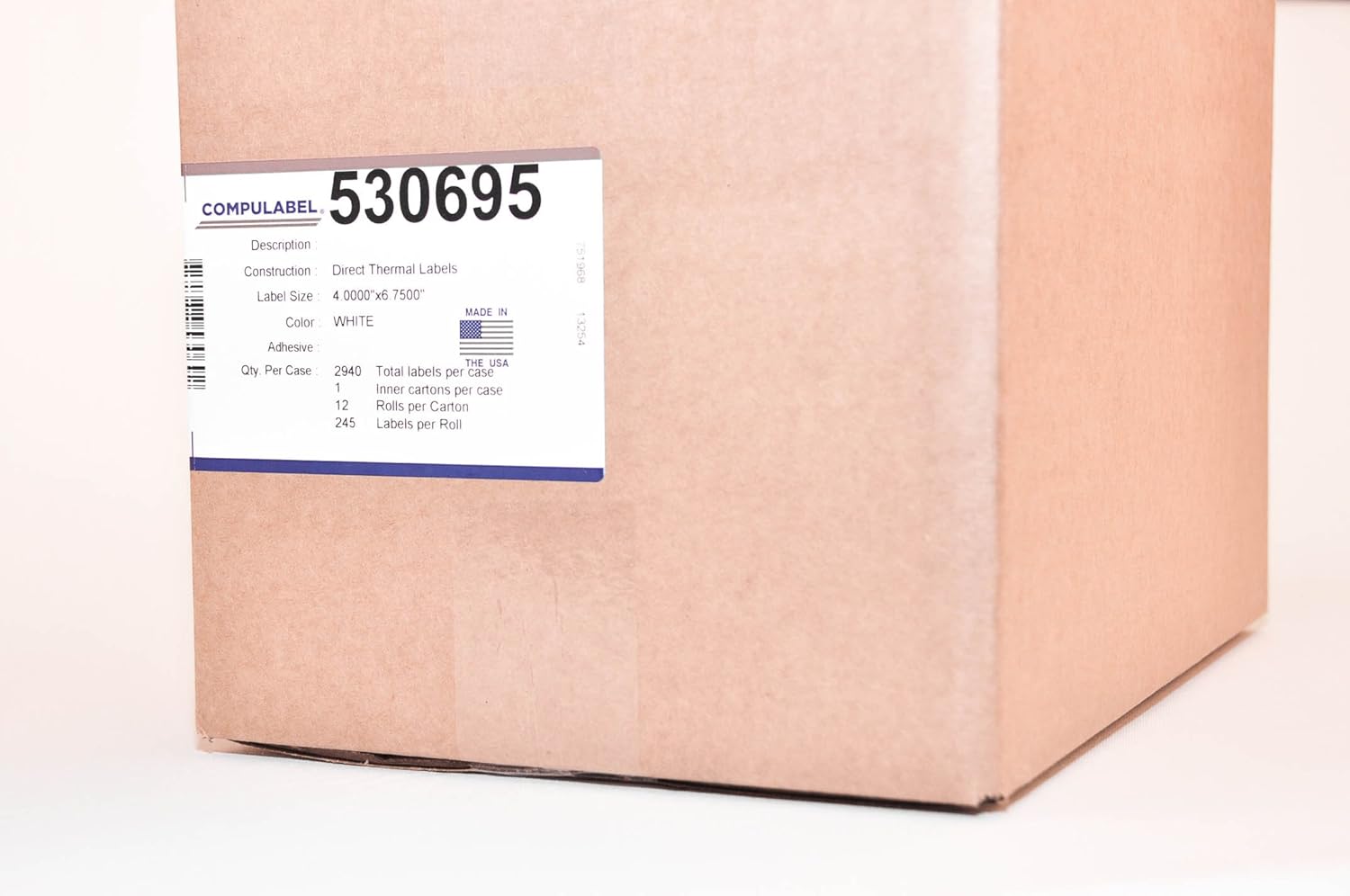 CompuLabel Direct Thermal Labels, 4x6 Inch, White, Roll, Permanent Adhesive, Near IR scan able with 3/4-Inch tab for FedEx,245 per Roll,12 Rolls/Carton (530695)