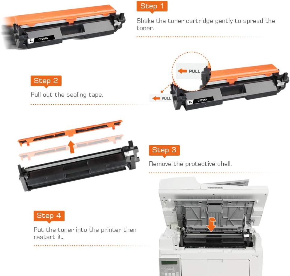 - Package:2 Packs of CF294A toner cartridges and an installation guide