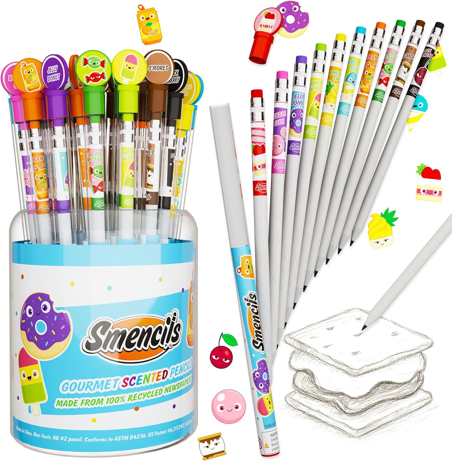 - Smencils are pre-sharpened HB no.2 scented pencils made from recycled newspaper and are ideal for homework, tests, arts, crafts, activities, or teaching incentives