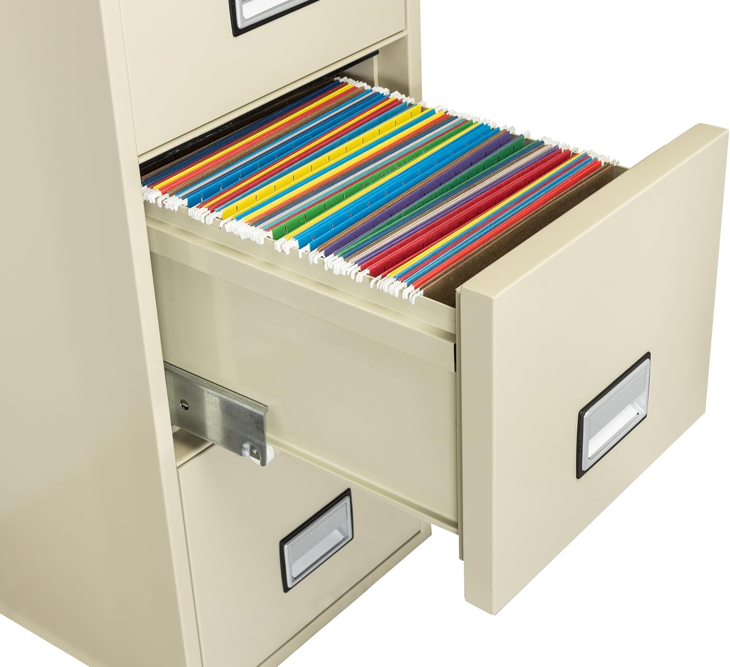 31 inch 4-Drawer Vertical Fireproof File Cabinet – Letter Size Filing – Key Lock – Water Resistant Seal – Fire and Impact Rated – Putty Finish – Model LTR4W31P