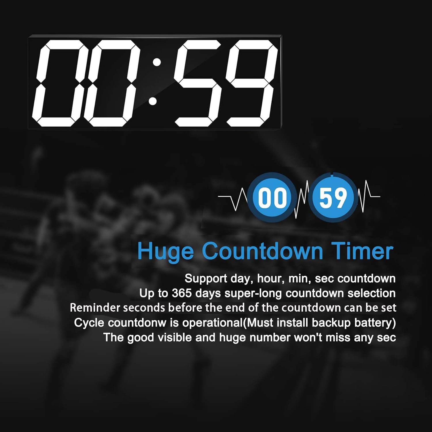 - 【Huge and Visible Countdown Clock】This countdown timer supports 364 days 23 hours 59 minutes 59 seconds ultra-long countdown time. Also can set for the minute or seconds countdown. Nobody will miss the countdown because of the 6-inch huge numbers. We updated the user manual and took a video tutorial for countdown function, if you don’t know how to set it, just contact us to get the video tutorial and new version user manual.