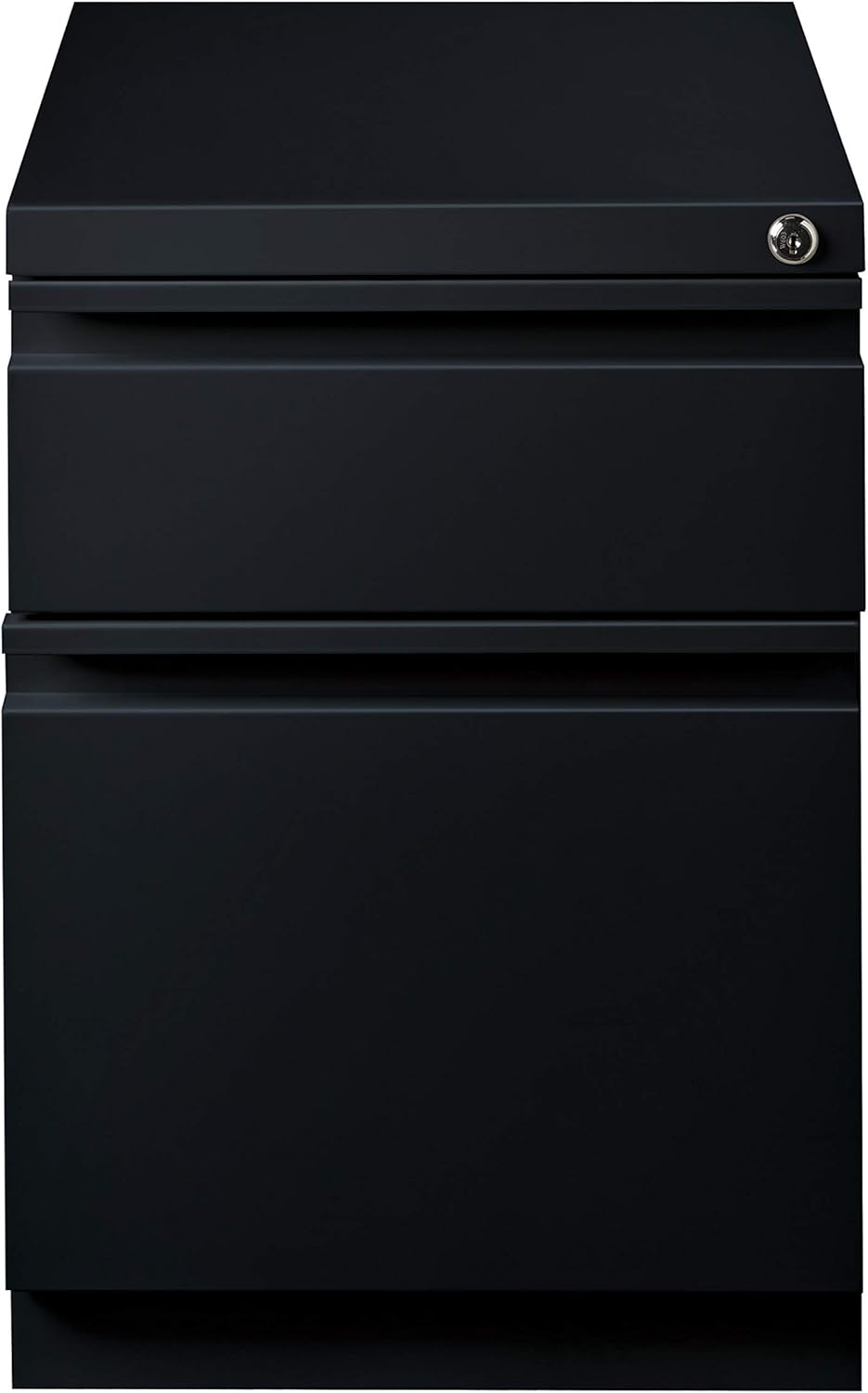 20 Inch Deep Metal 2 Drawer Box-File with Full Pull, for Home and Office, Holds Letter Width Hanging Folders Mobile Pedestal, Black
