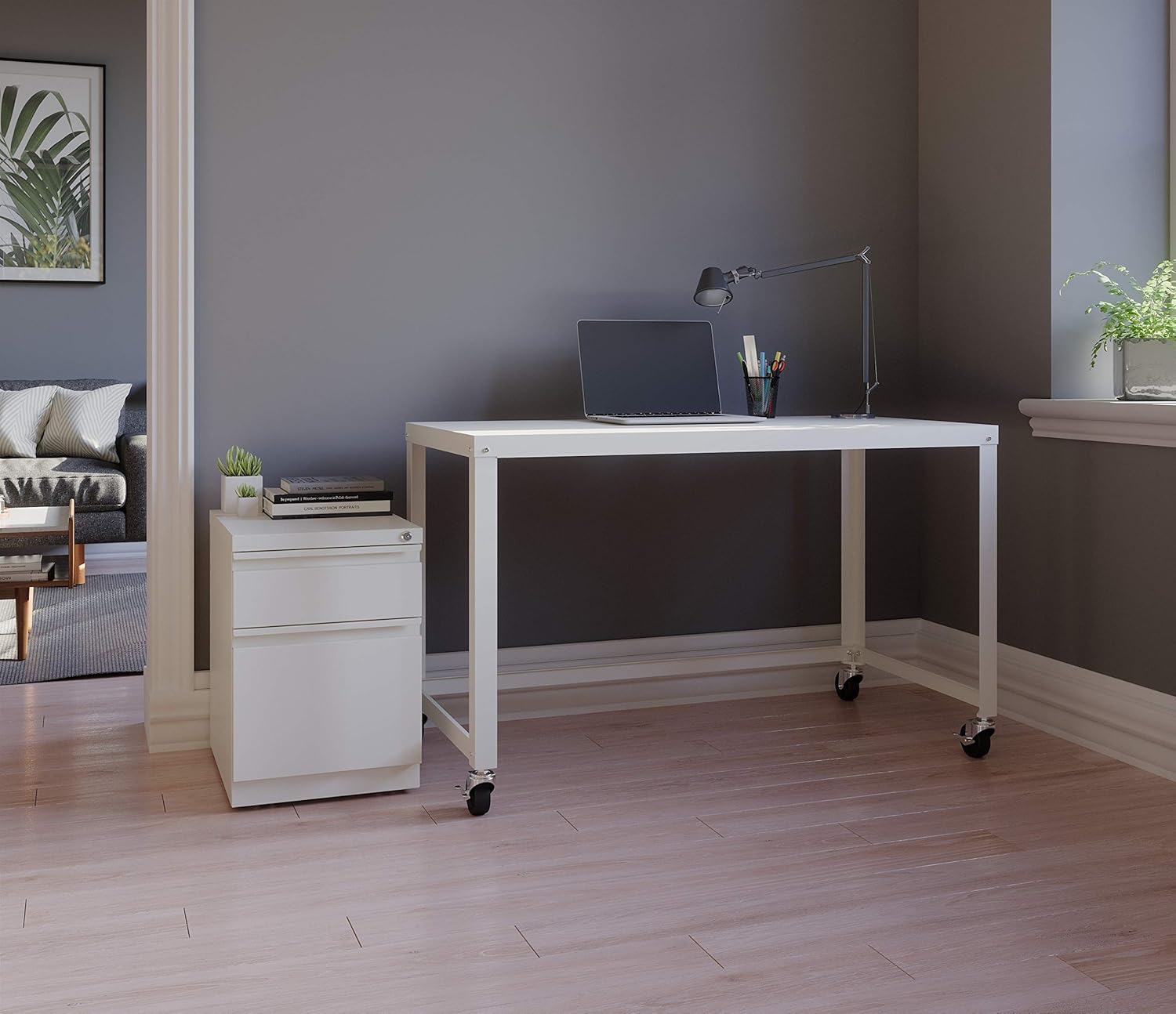 20 Inch Metal 2 Drawer Full Pull, for Home and Office, Holds Letter Width Hanging Folders, 20" Deep Box File Mobile Pedestal File, White