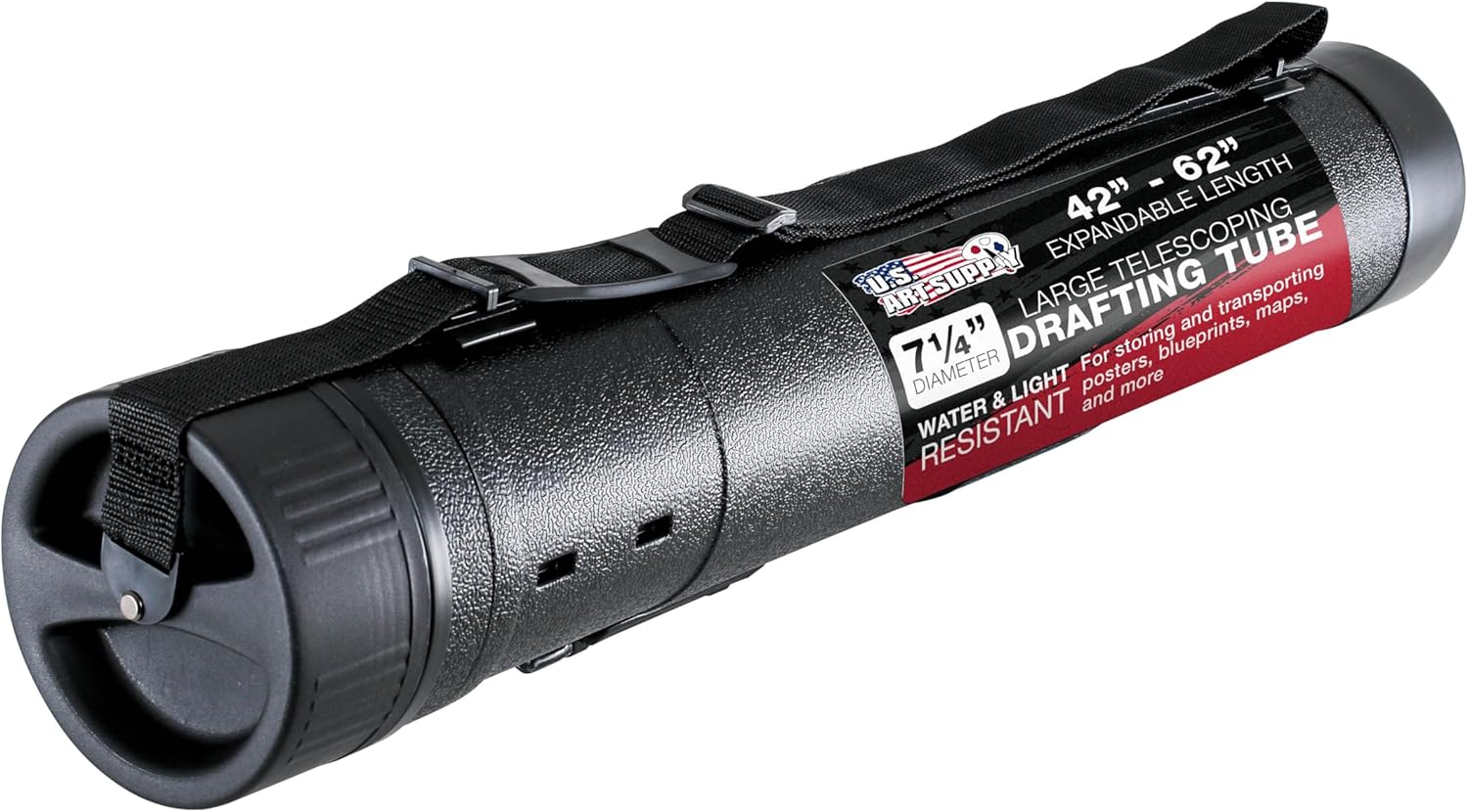 U.S. Art Supply Extra-Large Telescoping Drafting Tube - 7-1/4" Outside/6-5/8" Inside Diameter, Expands 42" to 62", Durable Protection with Shoulder Strap - Ideal for Posters, Blueprints, Art & More