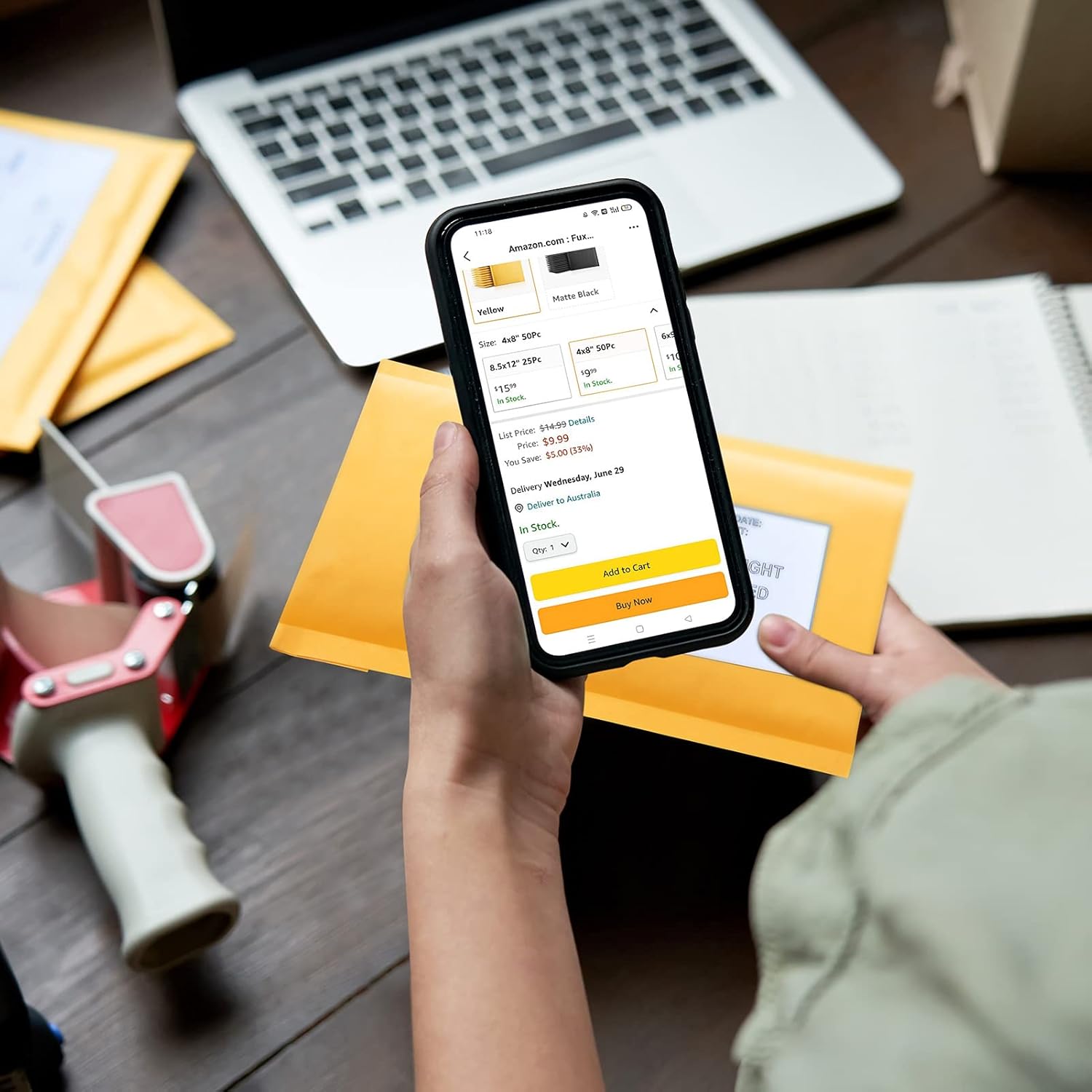Fuxury Kraft Bubble Mailer 4x8” 50Pack Strong Adhesion Padded Envelopes Thick Bubble Envelopes Usable Size 4x7" Waterproof Cushioned Bubble Mailers Packaging for Small Business #000 Yellow