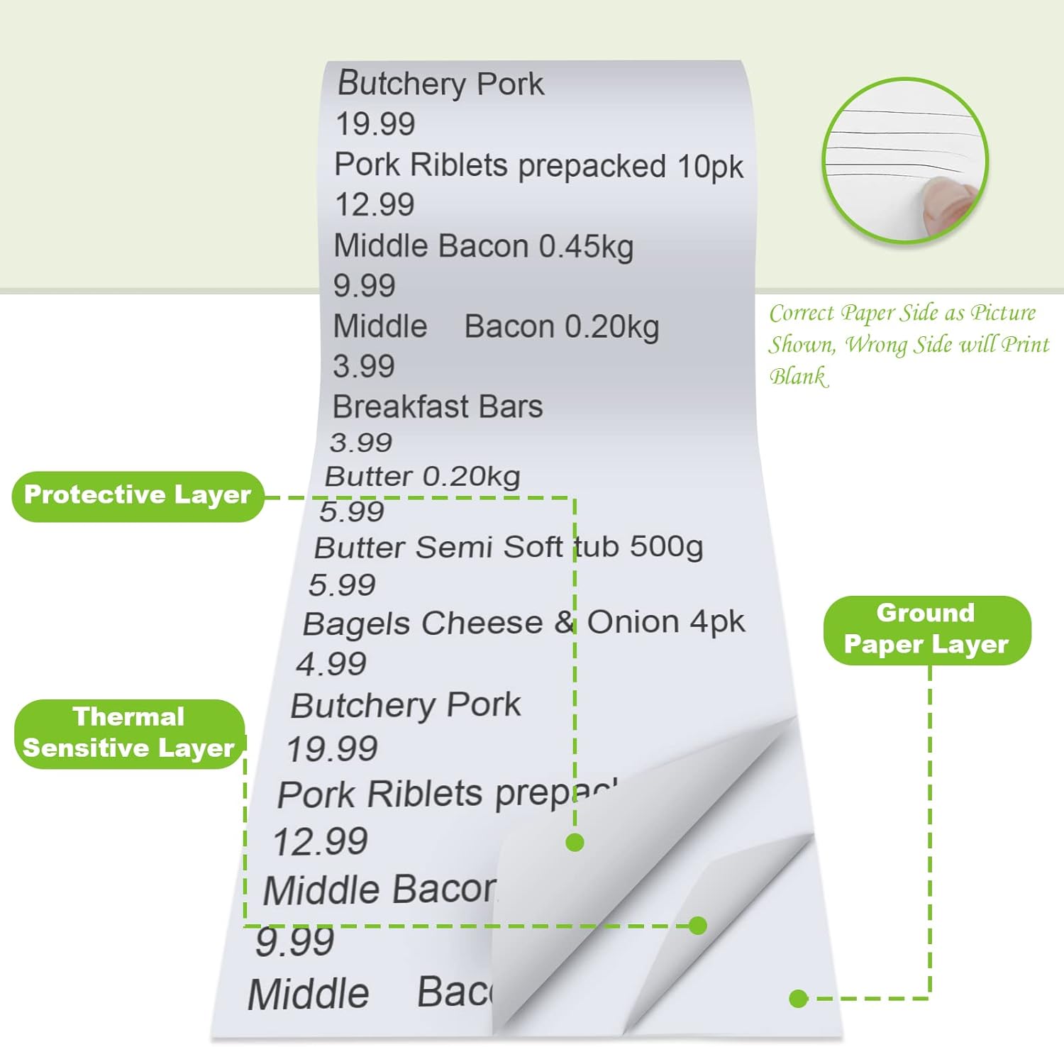 - ➤ 💪 RELIABLE ALL-DAY PERFORMANCE** Engineered for 24/7 use! Withstands heat, humidity & receipt oil. Smooth feeding prevents jams even at 200mm/sec print speeds. Reduce printer downtime & keep checkout lines moving!