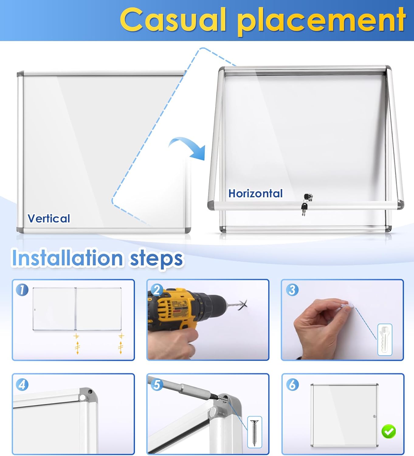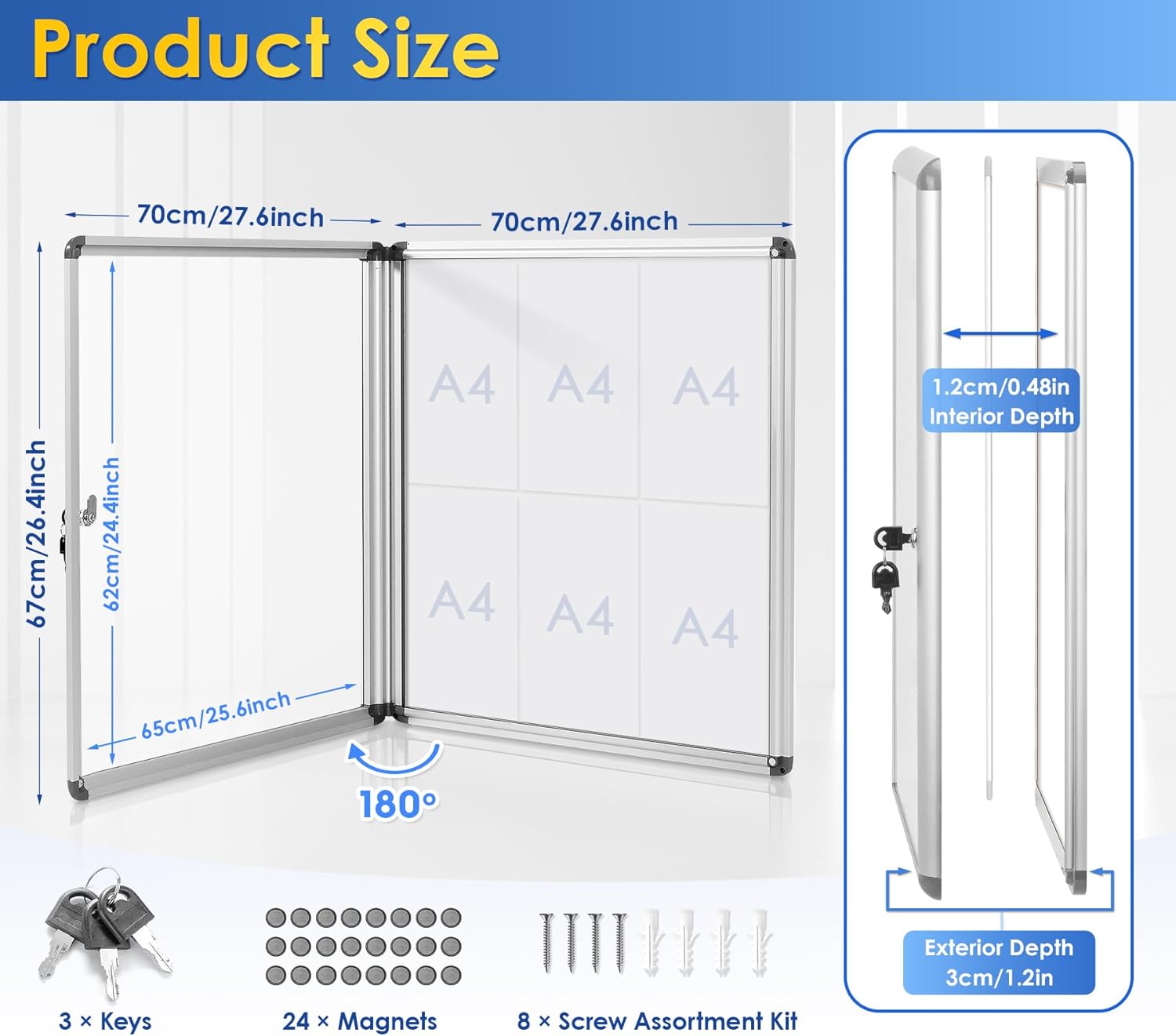 - Professional and Organized Look —Offering a compact solution to save valuable wall space and helps to keep the wall clean and organized,such as an office, school, or community center.
