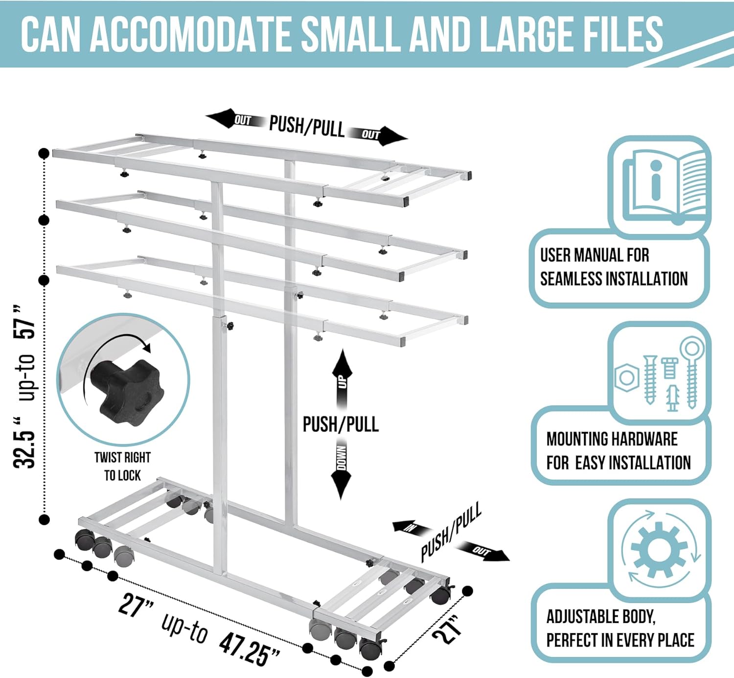 - Sturdy Blueprint Plan Rack: The AdirOffice blueprint storage organizers are crafted from solid steel and capable of holding up to 240 pounds or up to 1200 documents. With the included assembly manual and hardware, you can have this blueprint hanger ready with ease.