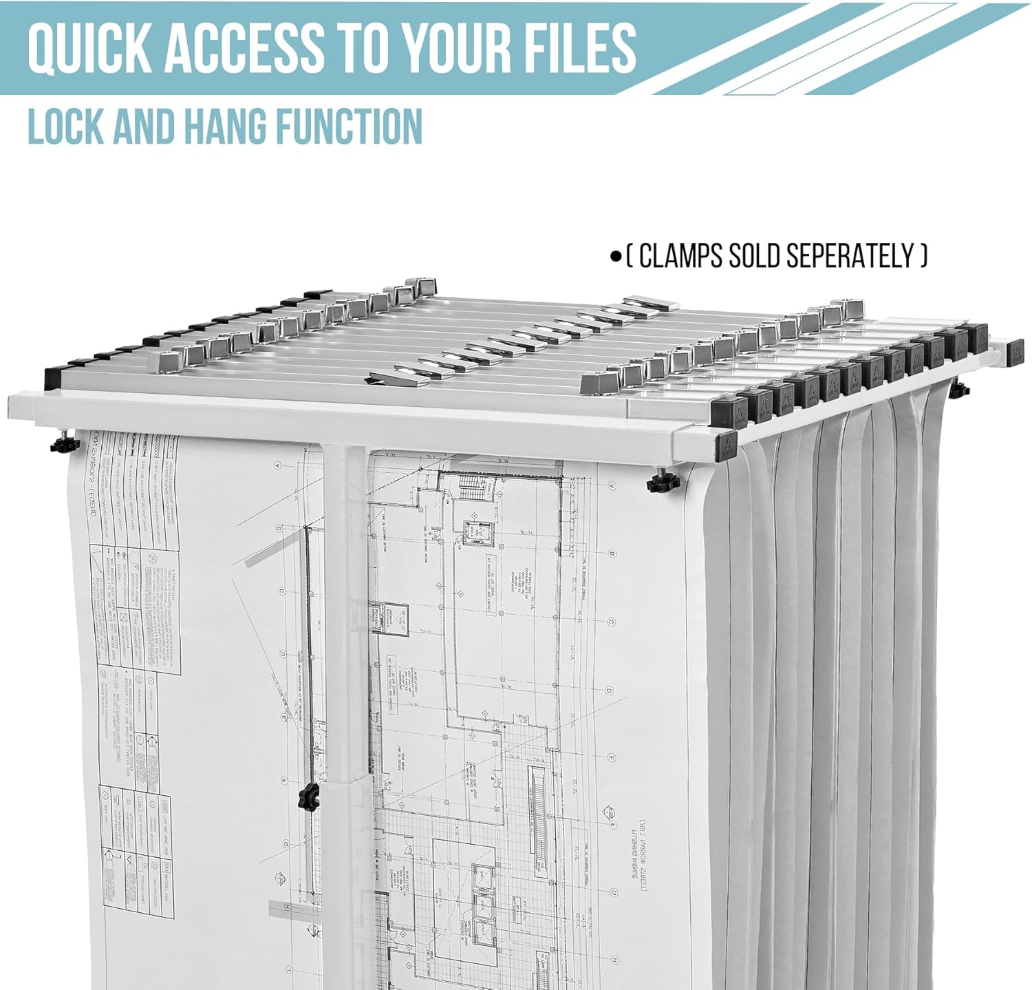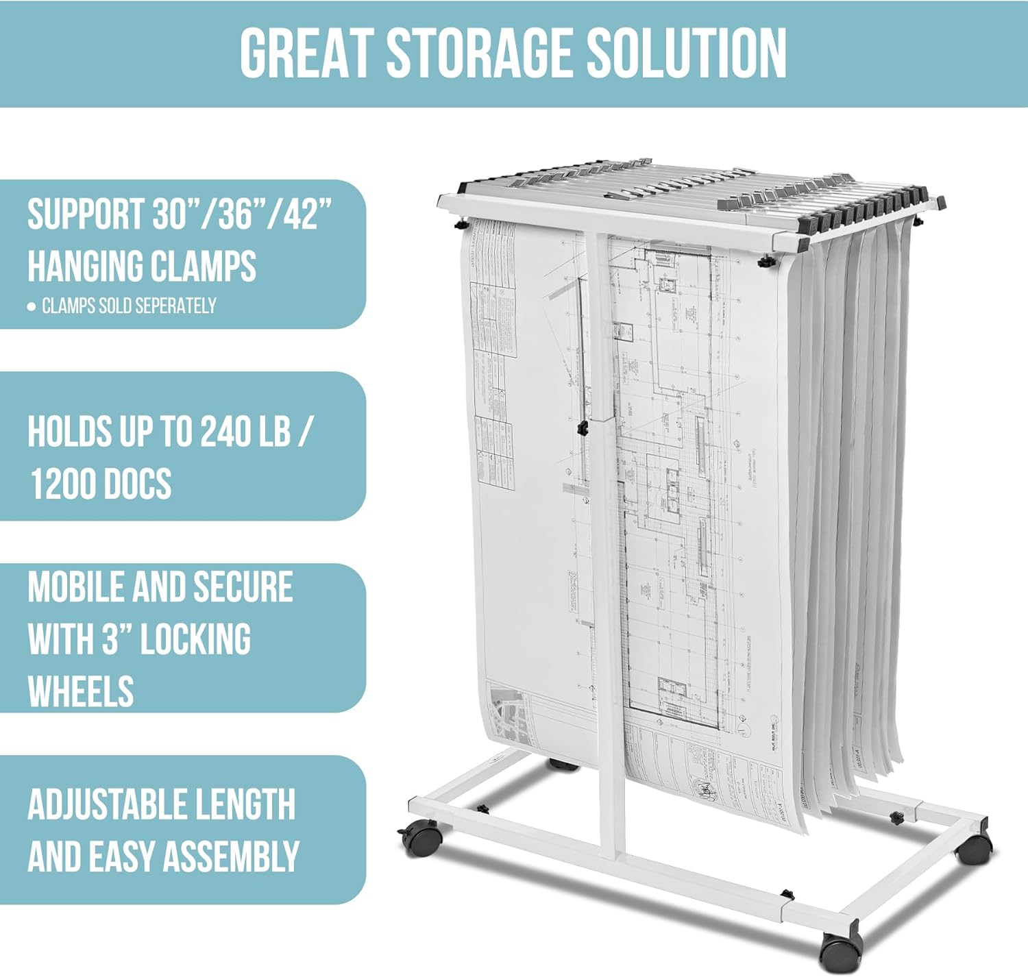 - Mobile Blueprint Rack: The Adir hanging blueprint racks are transportable with ease. The portable storage for blueprints is equipped with brakes to ensure stability.