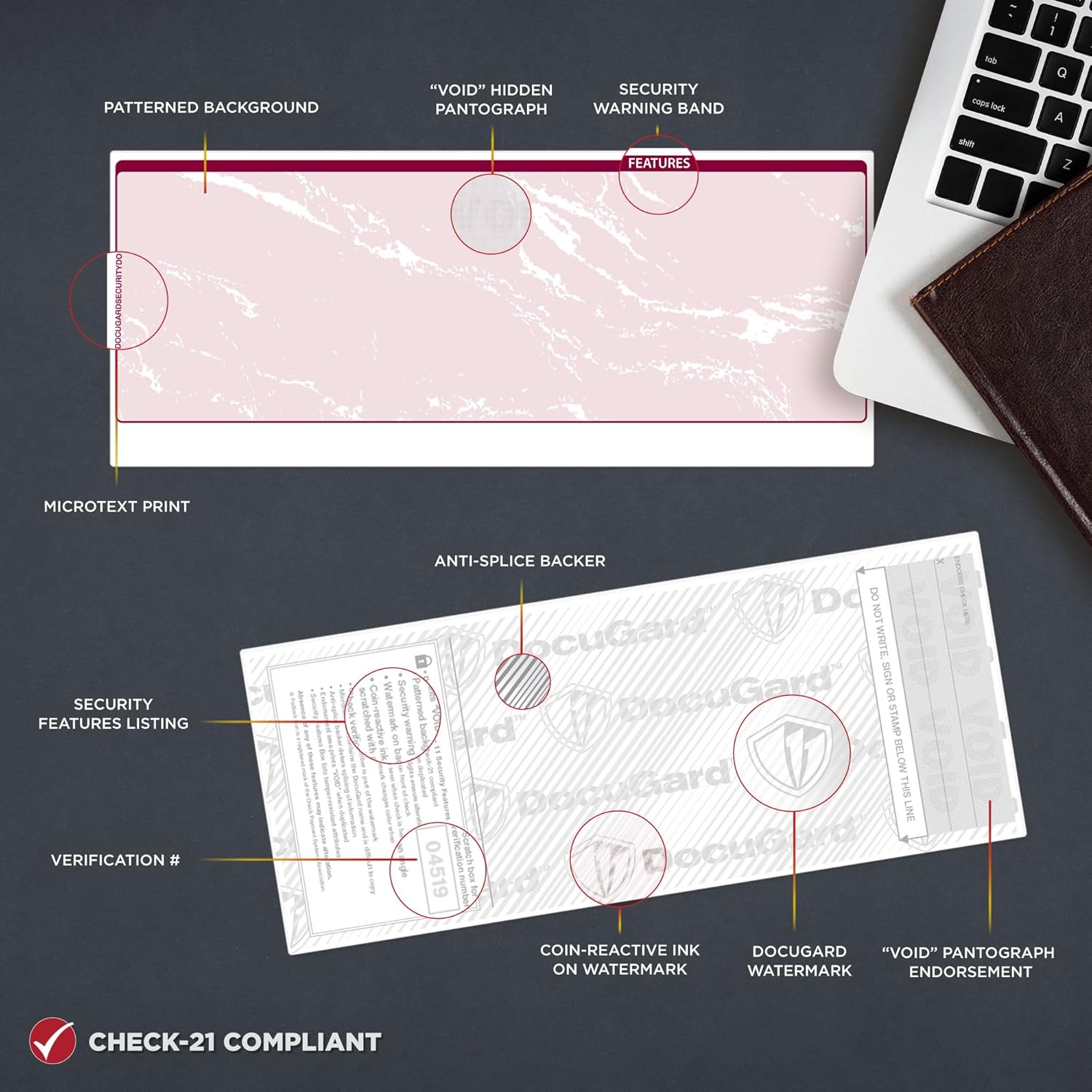 DocuGard Standard Burgundy Marble Bottom High Security Check Paper - QuickBooks & Laser/Inkjet Printer Compatible - 11 Security Features - 500 Blank Business Checks (04519)