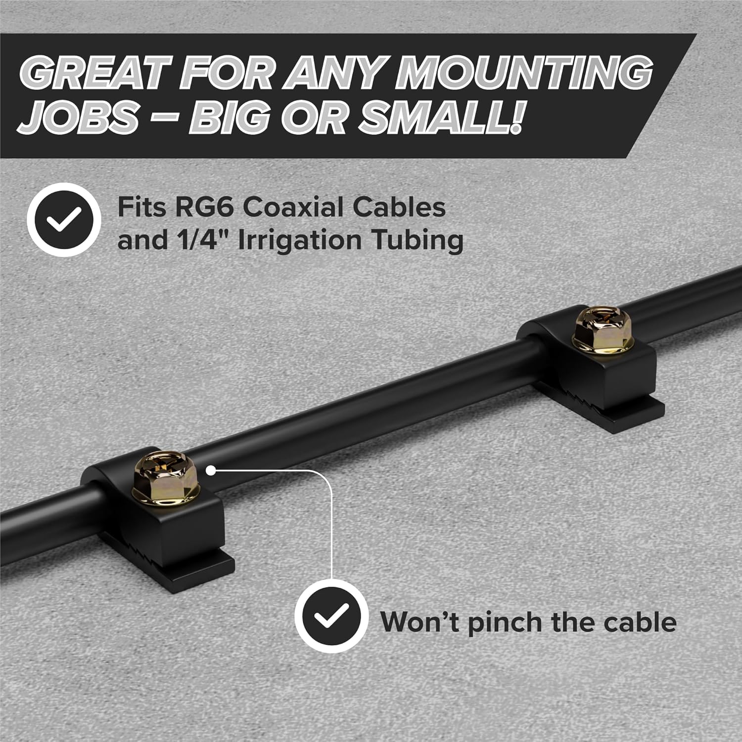 - 100 Black Cable Clips with Screws: Our coaxial cable clips are constructed with durable plastic that won't damage coaxial cables and wires, while also preventing electrical shorts.