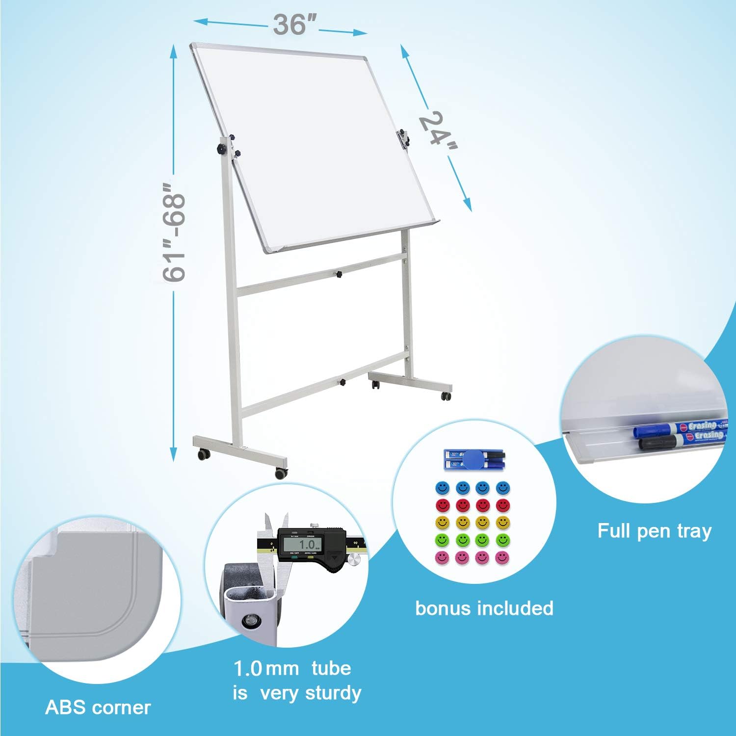 - Scratch-proof Whiteboard & Heavy-duty Sturdy Stand: Our 36"x24" aluminum frame mobile magnetic white boards is made of high quality material for easy drywipe while compatible with all dry erase markers, the rolling stand is made of rust-protective coating iron TO LAST A LIFETIME.