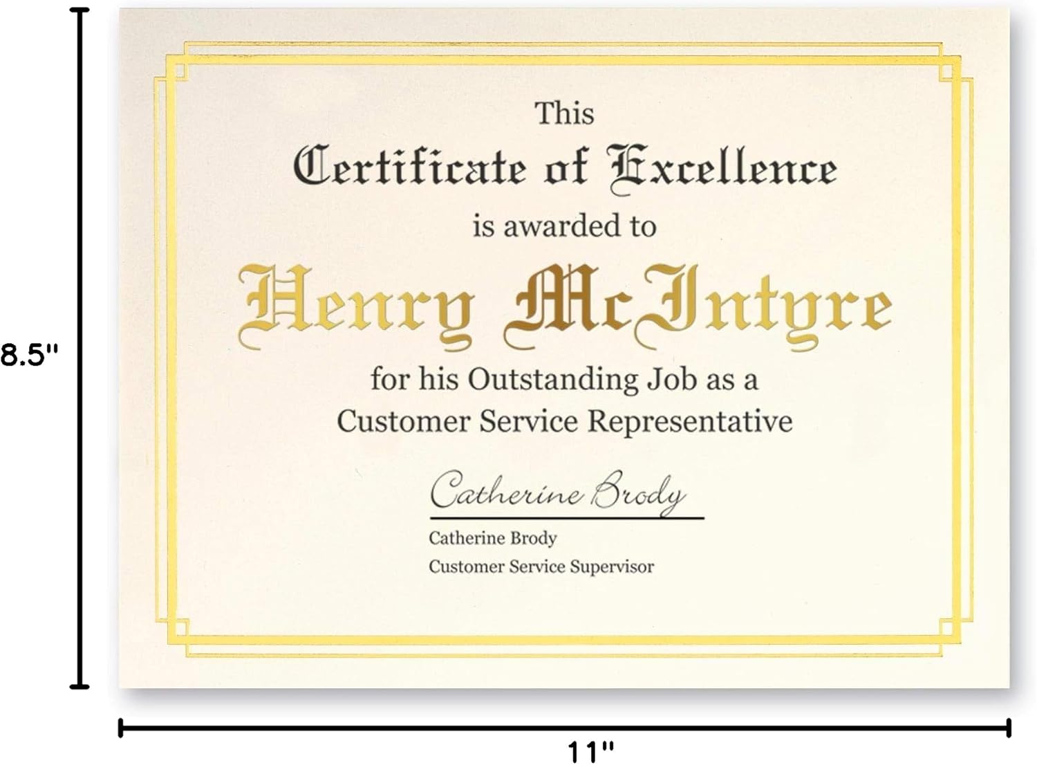 - Elegant Design: Each box includes 50 embossed 8½" x 11" certificates with a stunning double gold foil inner border on 38lb cream paper, adding a touch of sophistication to every award. Note: internal border dimensions measure 6¾" x 9½"
