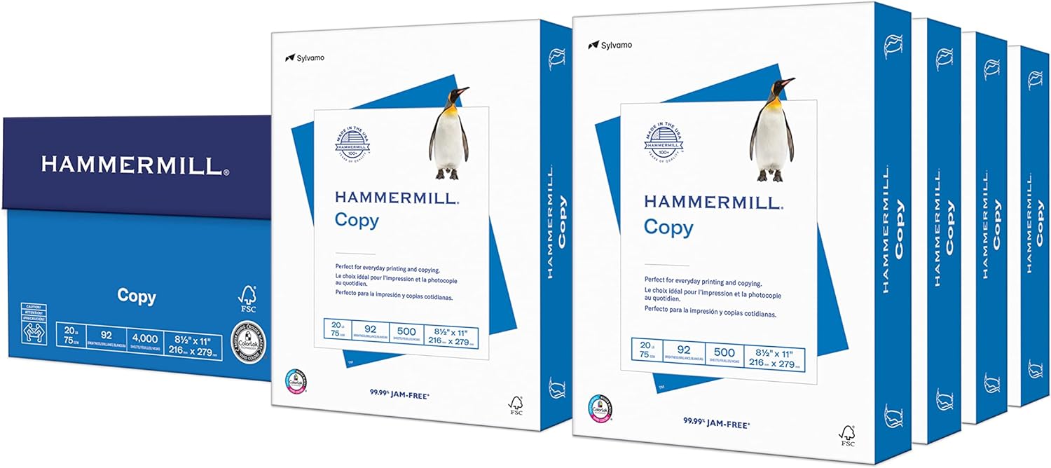 Hammermill Printer Paper, 20 Lb Copy Paper, 8.5 x 11 - 8 Ream (4,000 Sheets) - 92 Bright, Made in the USA