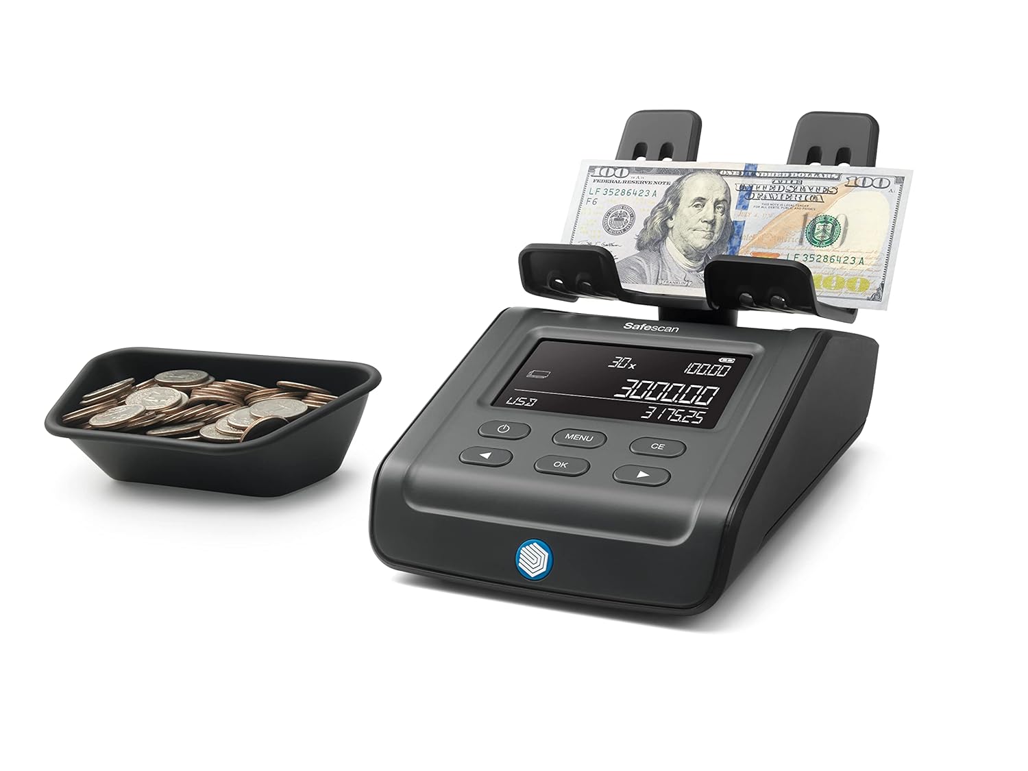 - VERSATILE: The ultimate all-in-one cash counter, the Safescan 6165 Advanced Money Counting Scale can easily count coins (loose or rolled), bills, or bill bundles; Users can automatically deduct the day’s starting cash from the total