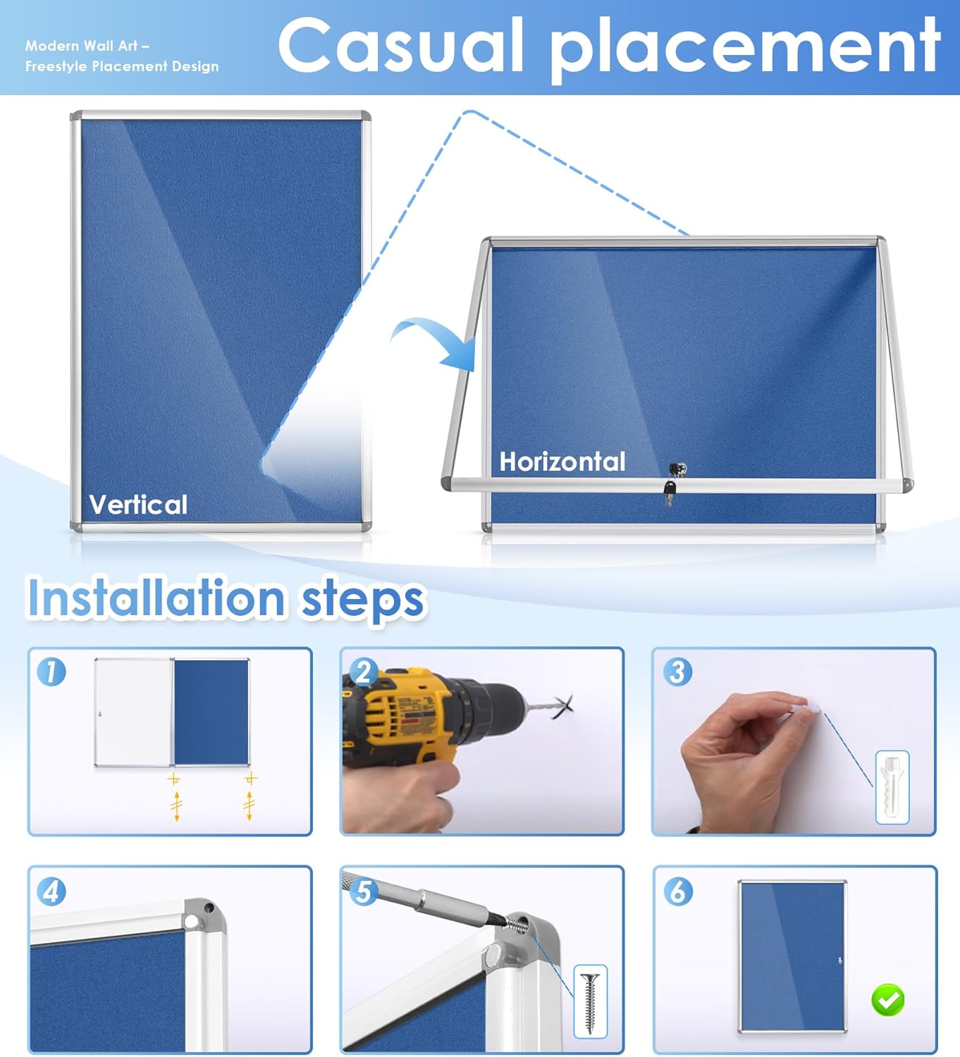 - Versatile Use —Can be used for a variety of purposes, including posting announcements, displaying artwork or photos, and presenting information for public viewing.With a simple and intuitive design ,it's convenient to post and update.