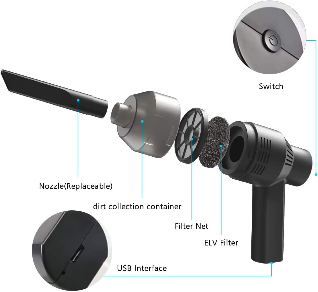- 【EASY TO CLEAN】The reusable filter can be taken out and washed by clean water to keep clean and remove bad smell,and need to dry the filter by the nature wind. Please clean the filter in time if the dust cup is full to make sure the keyboard vacuum cleaner works normally.