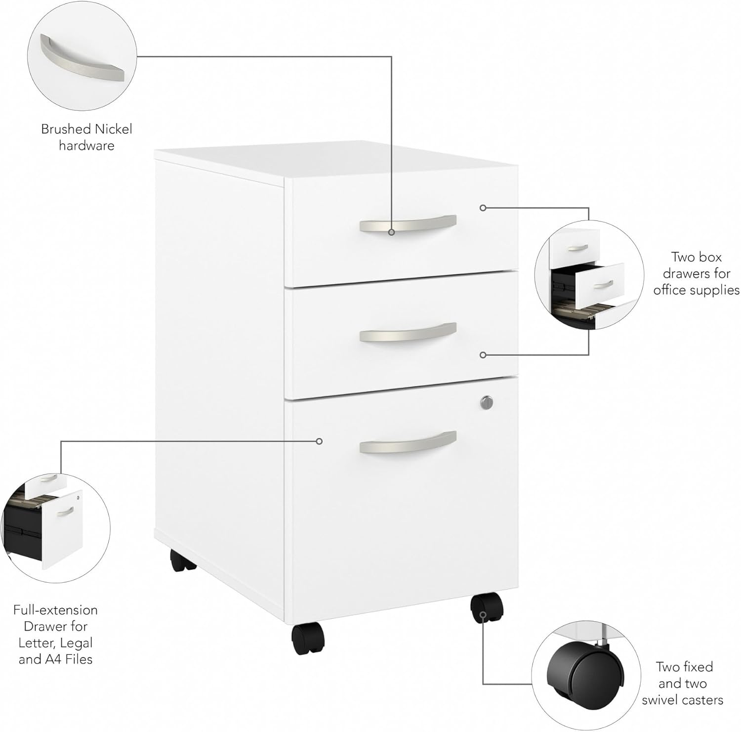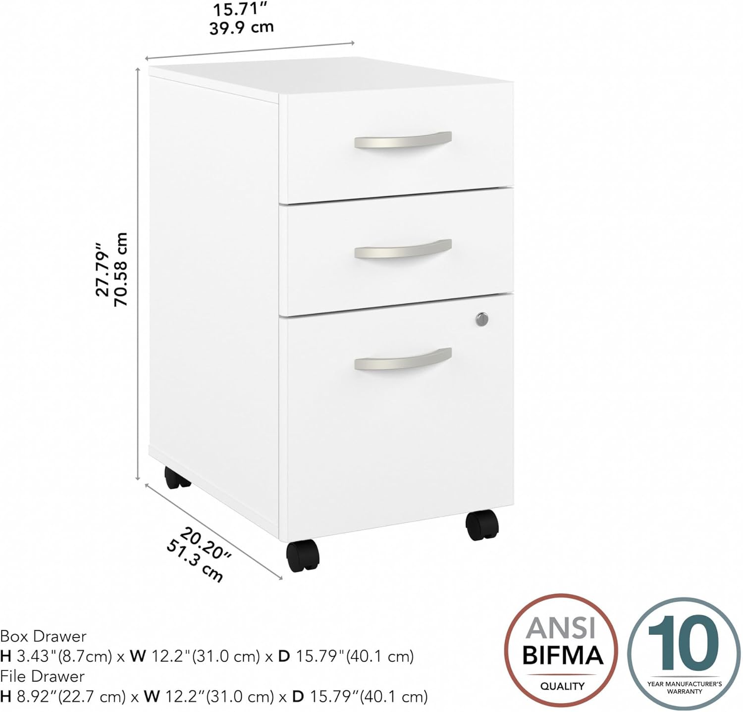 Bush Business Furniture Studio C 3 Drawer Mobile File Cabinet in White