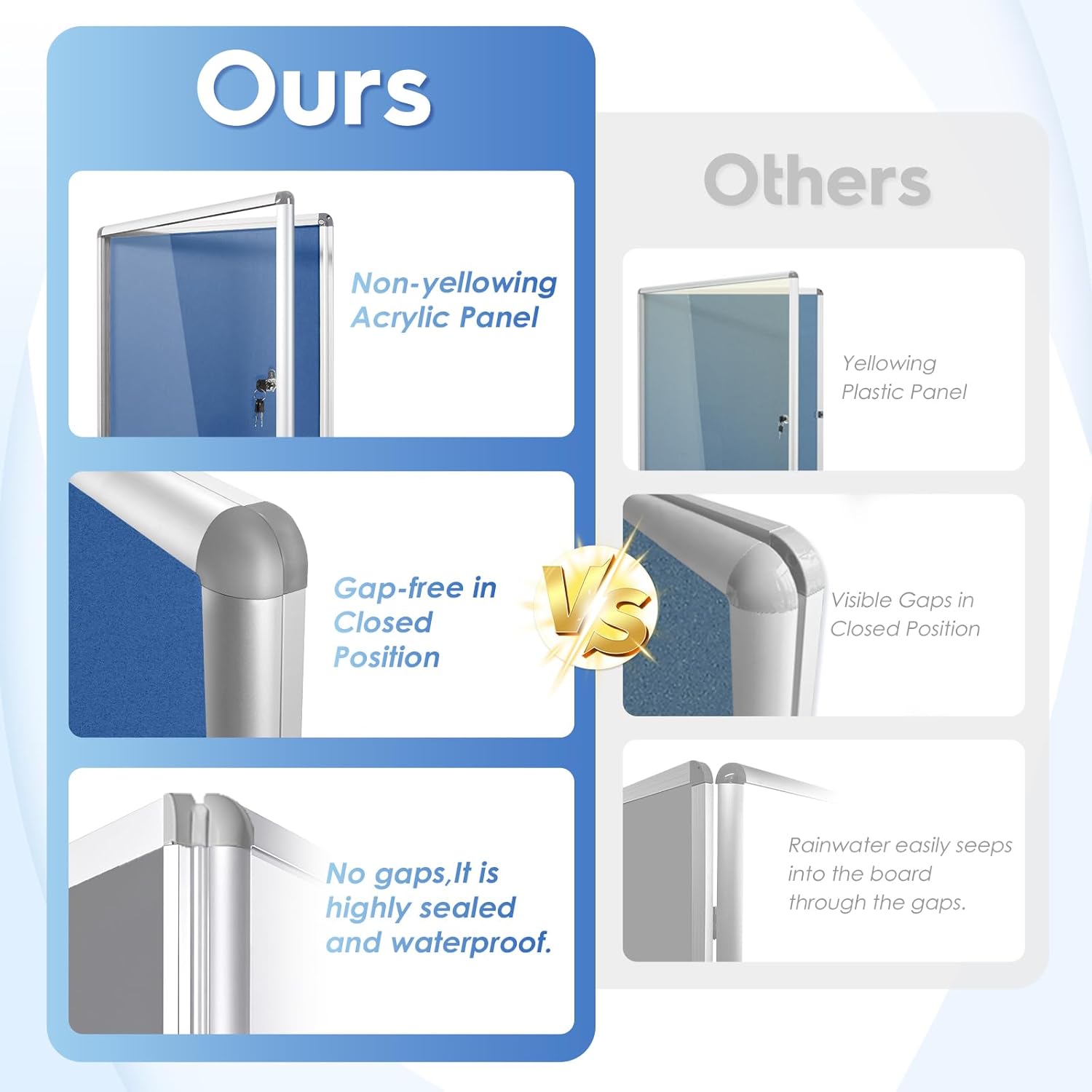 - Keep Safty —Lockable acrylic doors keep information safe from theft and vandalism. It's convenient to post and update notice documents,messages,pictures,memos,calendars,and sticker under the protection of key mechanisms (Come with 3 keys).