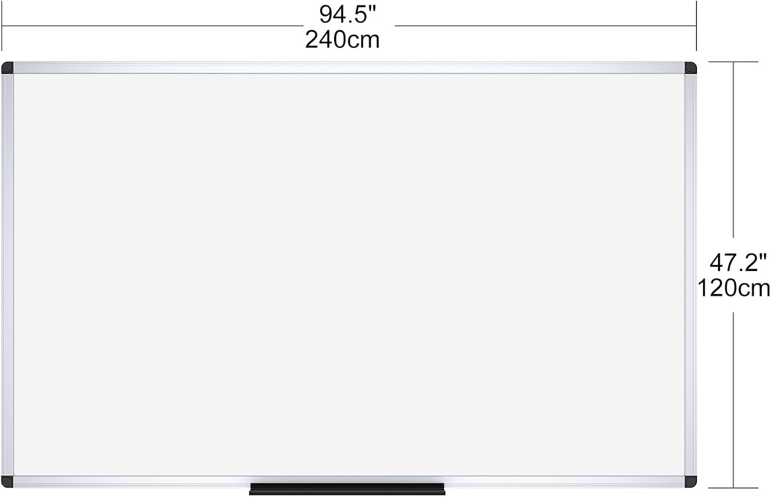 - Smooth Writing and Easy to Wipe: Large Magnetic whiteboard, overall size: 94.5" x 47.2" ( frame included); writing surface size: 93.0" x 45.7". Smooth & durable magnetic writing surface, easily dry wipe with all dry-erase markers. Give you a very smooth writing experience