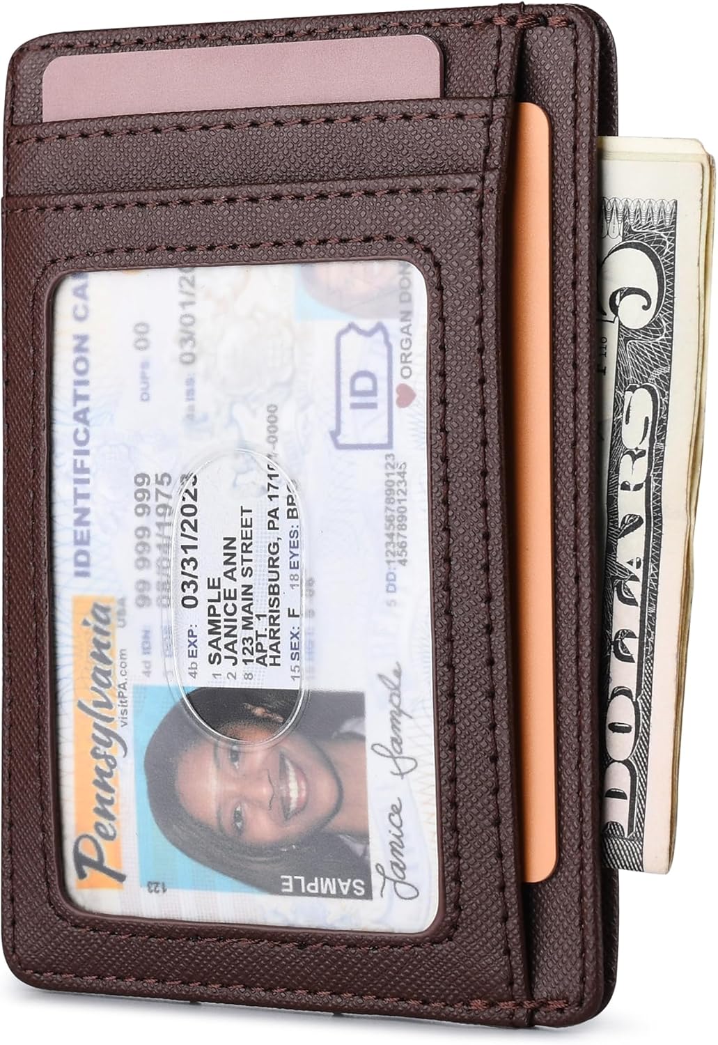 Buffway Slim Minimalist Front Pocket RFID Blocking Leather Wallets for Men and Women - Cross Coffee