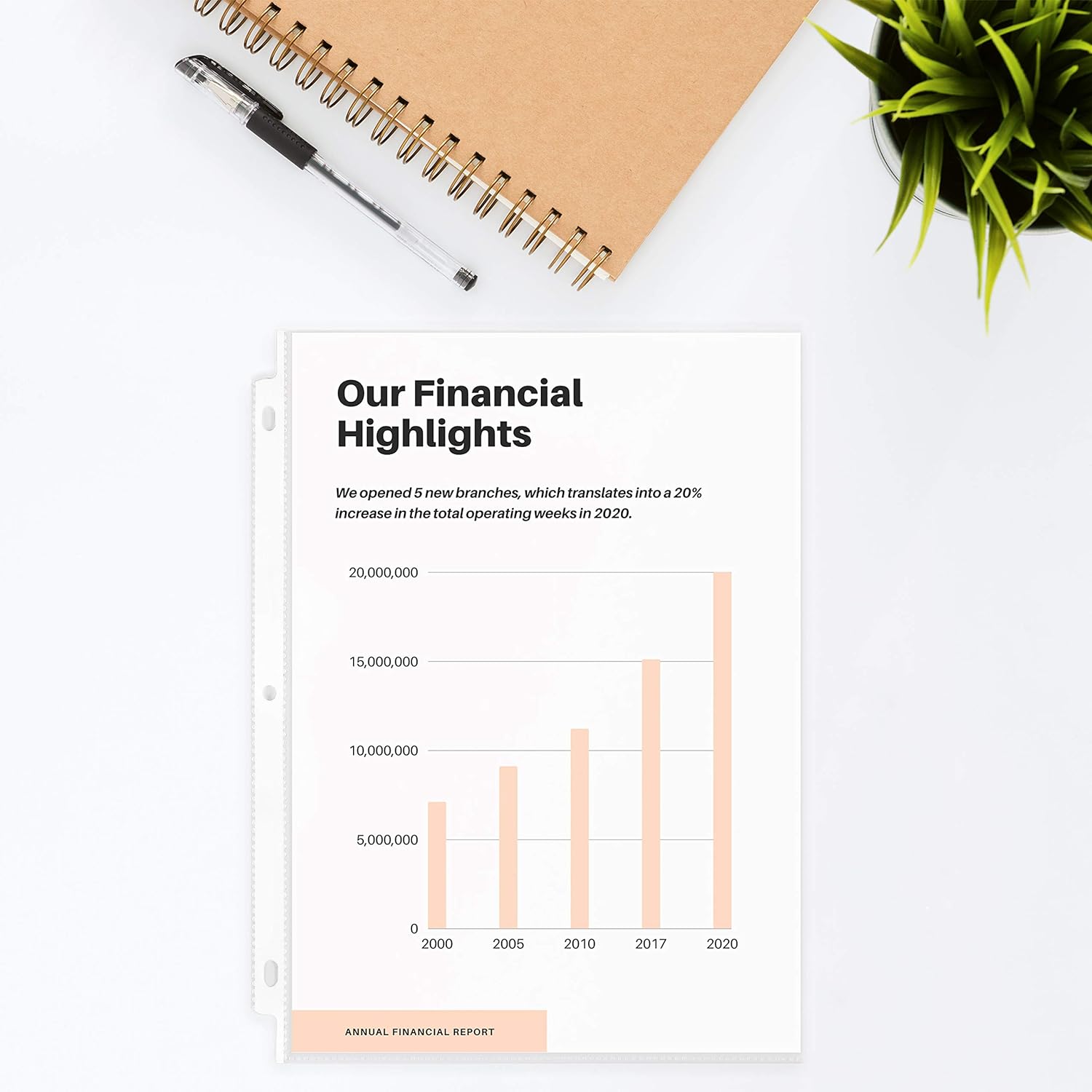 - ๐ฅ๐ฒ๐ถ๐ป๐ณ๐ผ๐ฟ๐ฐ๐ฒ๐ฑ ๐ฏ-๐๐ผ๐น๐ฒ ๐ฃ๐๐ป๐ฐ๐ต ๐ณ๐ผ๐ฟ ๐๐ถ๐ป๐ฑ๐ฒ๐ฟ๐: Built with a reinforced binding edge and pre-punched with three holes, these sheet protectors offer added strength and tear resistance, ensuring they stay securely in place in standard 3-ring binders even with frequent turning.