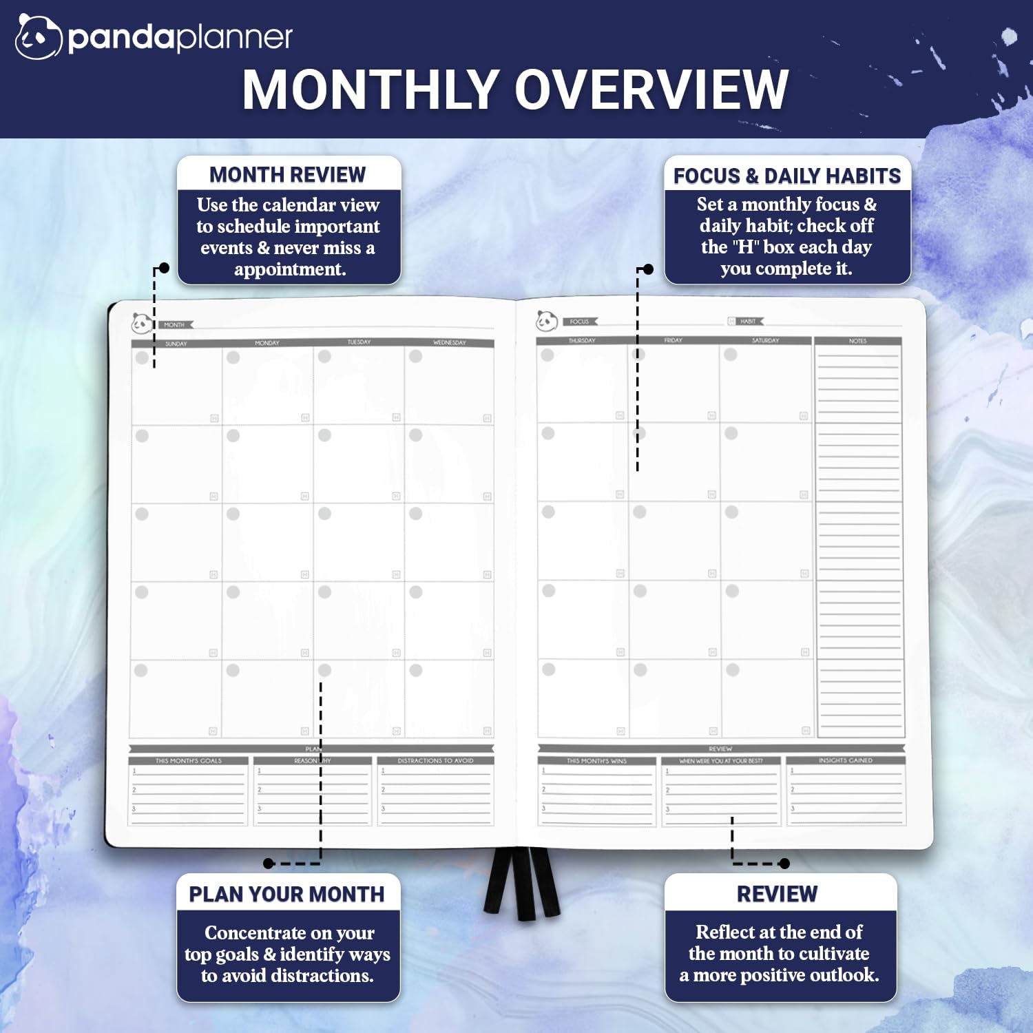 Panda Planner Pro Undated Daily Planner 2025-2026 with Hourly Schedule 8.5"x11" - To Do List Notepad, Daily Journal, Goal Planner, Habit Tracker, Gratitude Journal - Home/Office Supplies - Purple
