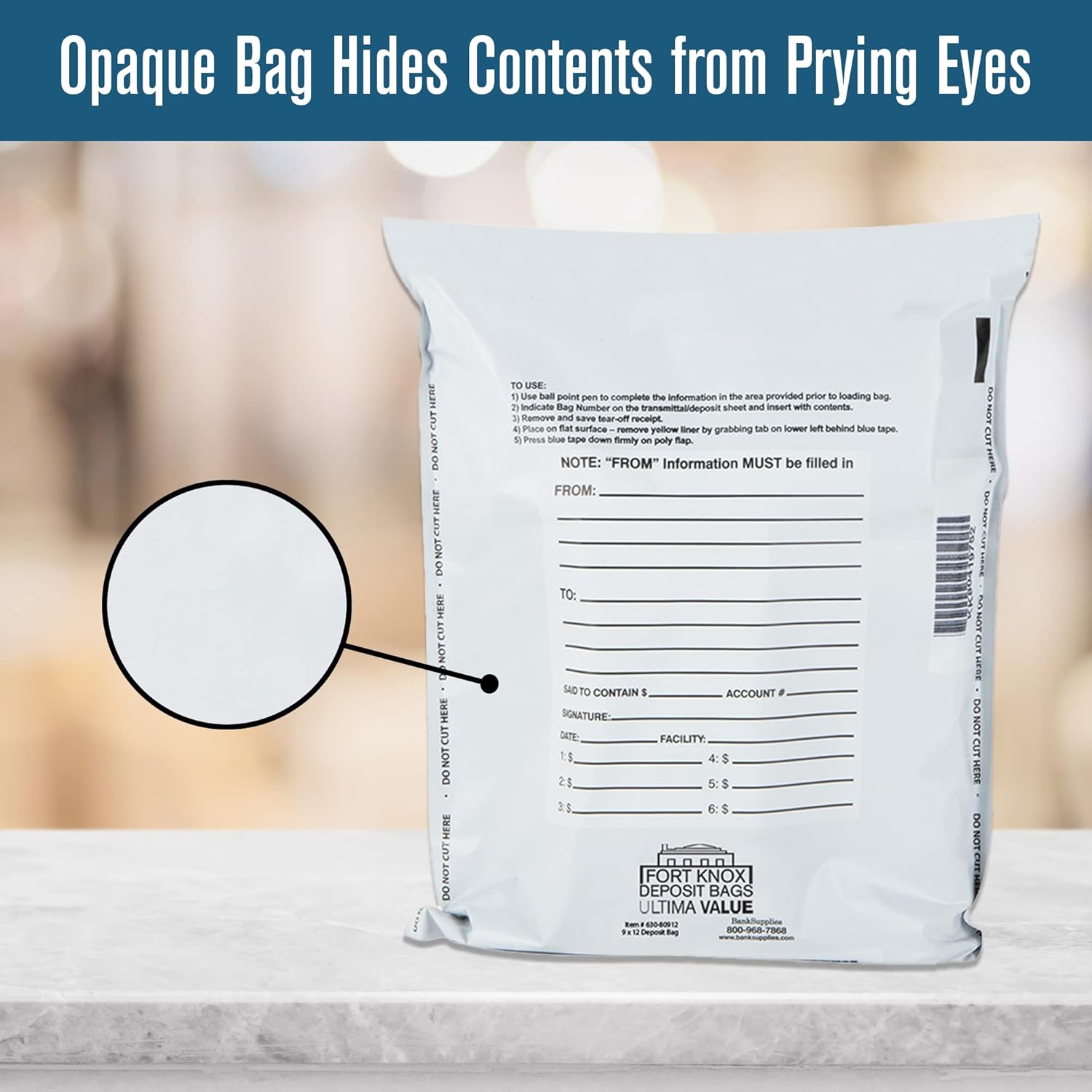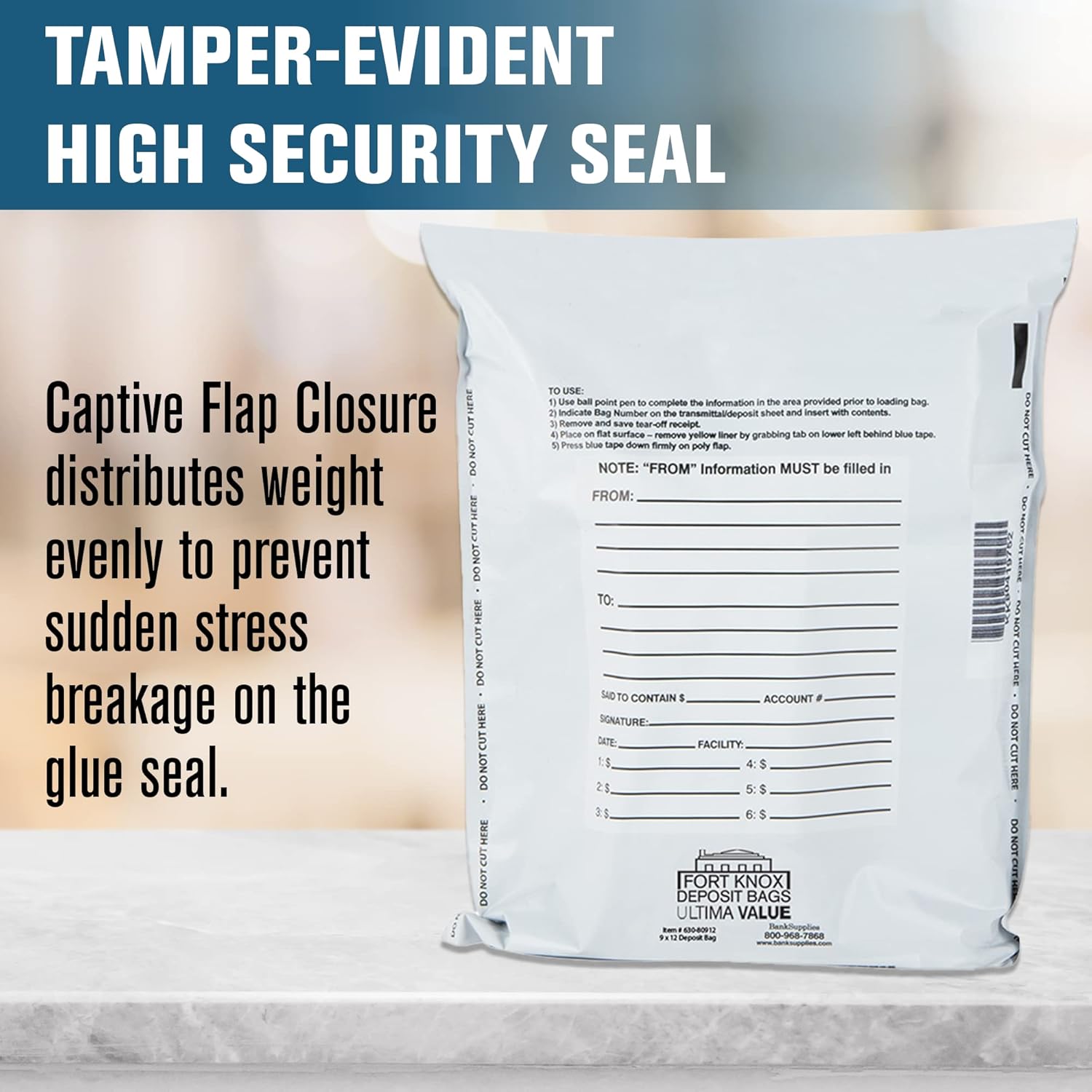 - WHITE DEPOSIT BAG: Ultima Value is a great security bag with tamper-evident features that make it impossible to hide tampering or unauthorized entry. Simply stuff the bank drop bag and drop it in the night deposit box.