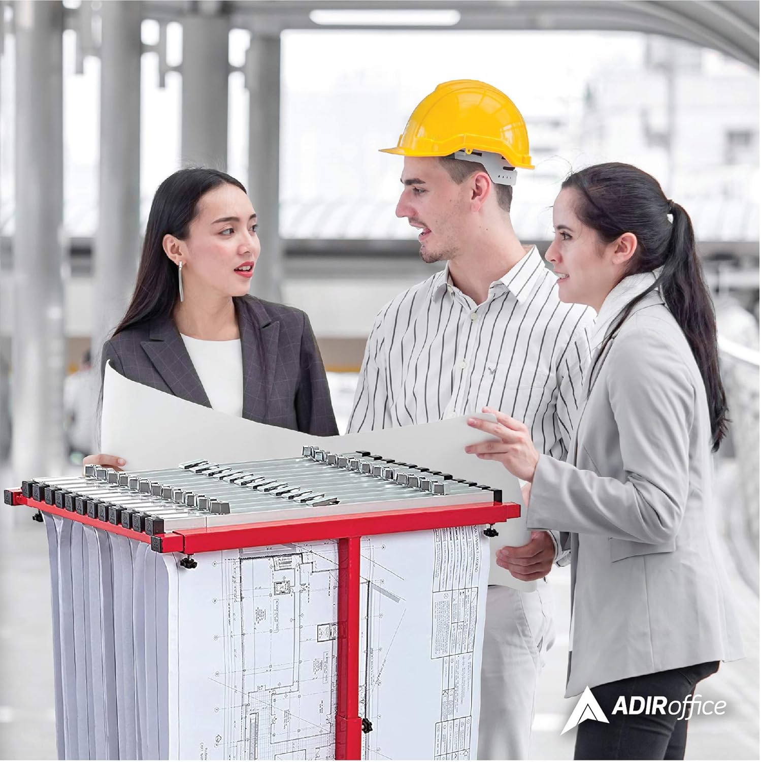 - Mobile Blueprint Rack: The Adir hanging blueprint racks are transportable with ease. The portable storage for blueprints is equipped with brakes to ensure stability.