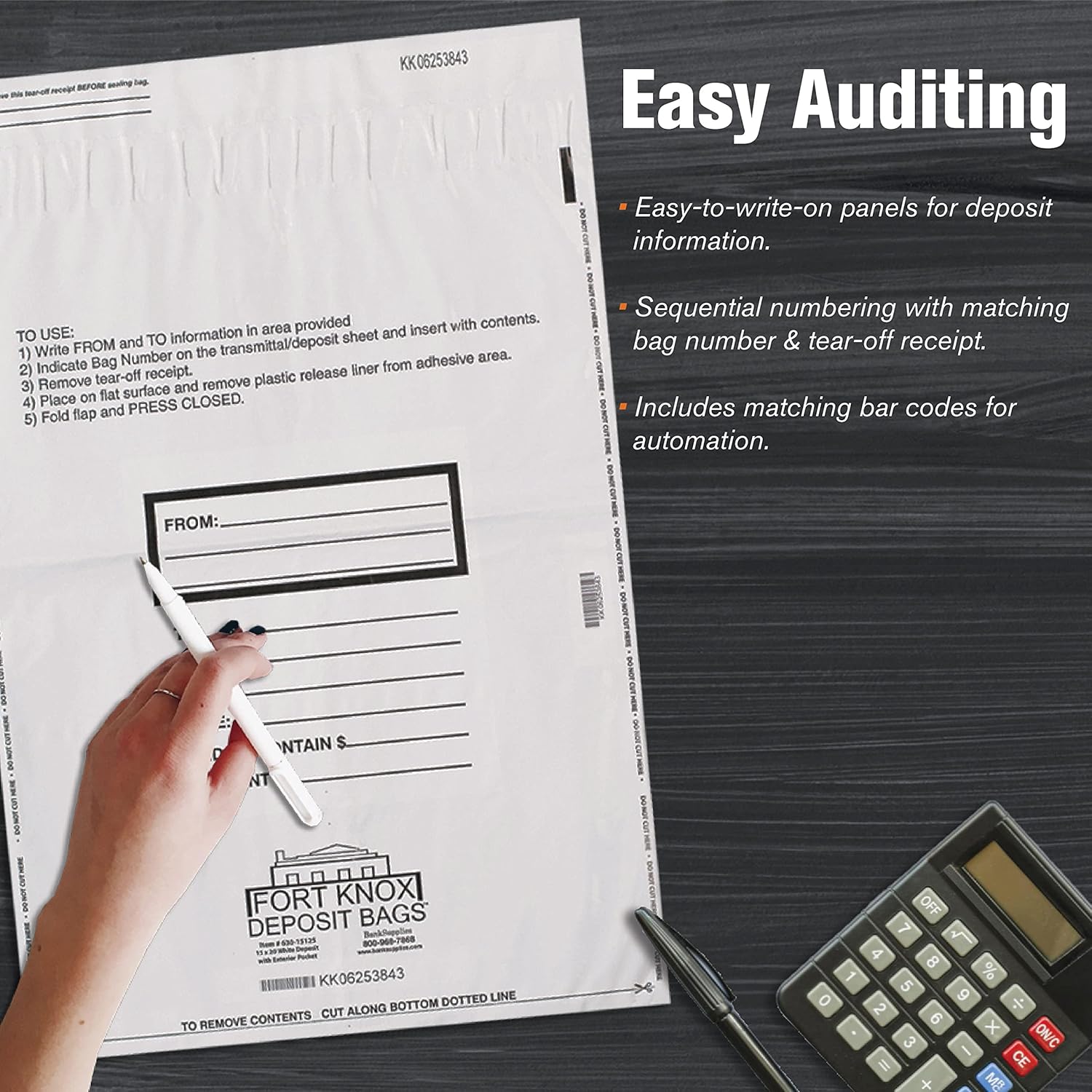 - EASY TO USE: The white bank bag features a 5-inch exterior pocket that is perfect for additional checks and non-cash items to be processed separately and supports easy automation.