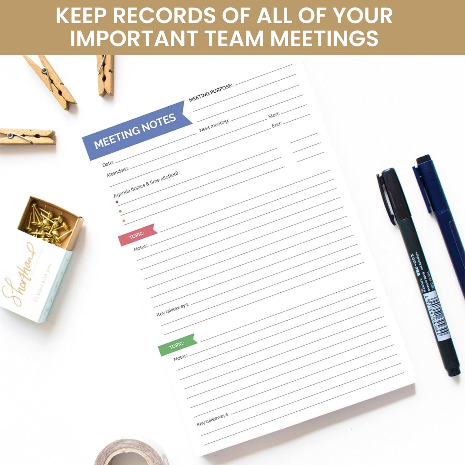 - 80 DOUBLE-SIDED SHEETS / PREMIUM QUALITY: This meeting notebook is crafted with durable 100gsm paper that resists bleed-through, ensuring a smooth writing experience. Its tear-off sheets make it easy to share notes or move on to your next meeting without hassle. Makes a great office gift!