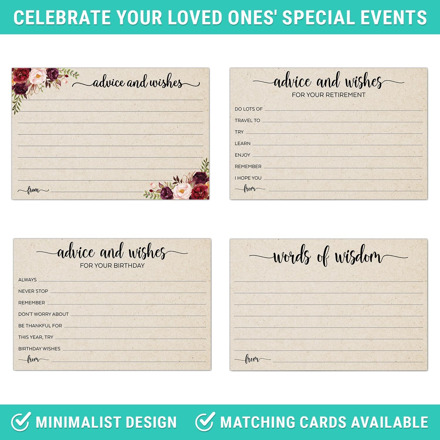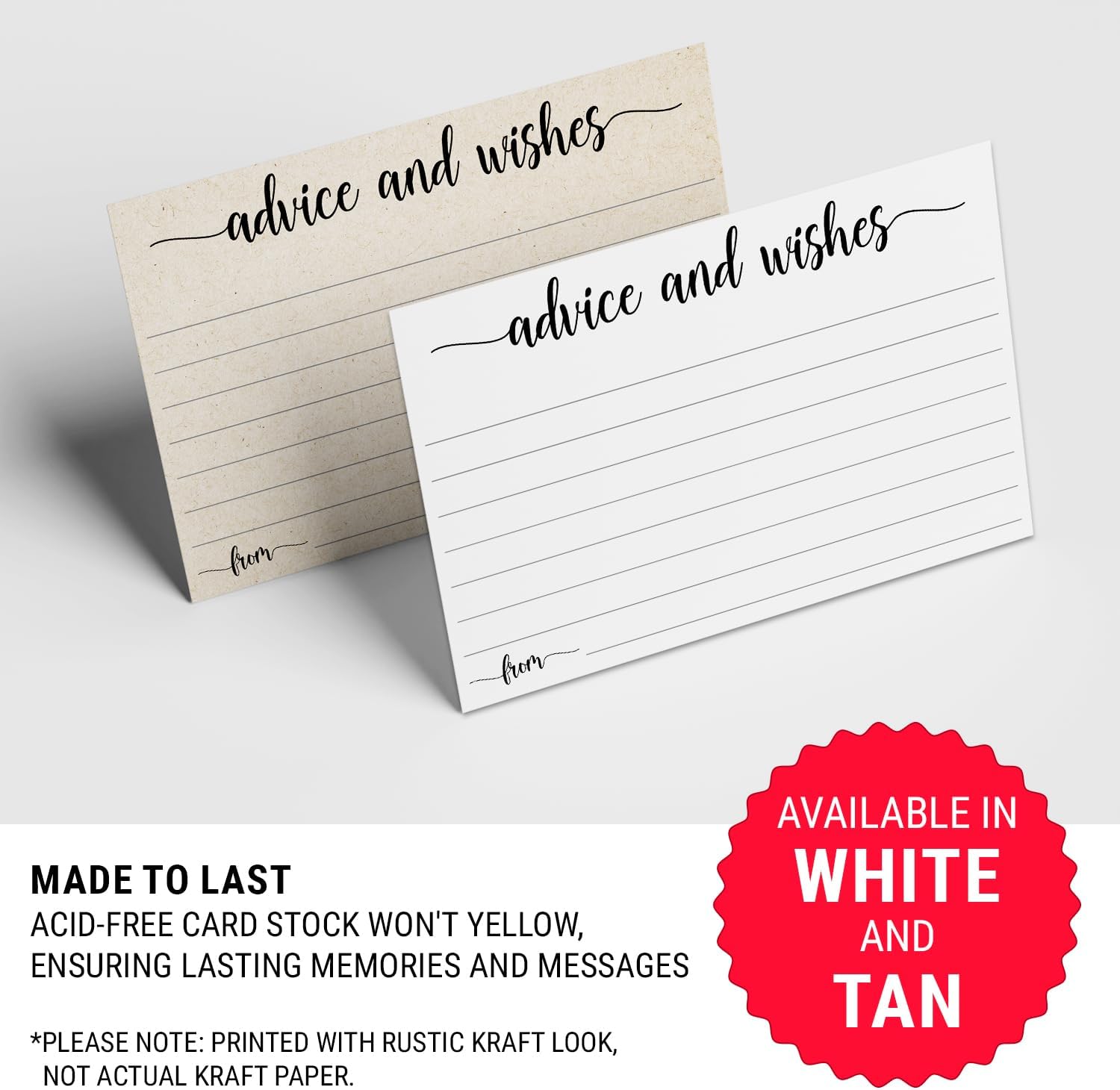 321Done Advice and Wishes Cards, Made in USA - 4x6 Kraft Tan, Blank Well Wishes for Wedding, Bridal, Mr and Mrs, Retirement, Baby Shower, Words of Wisdom - Pack of 50