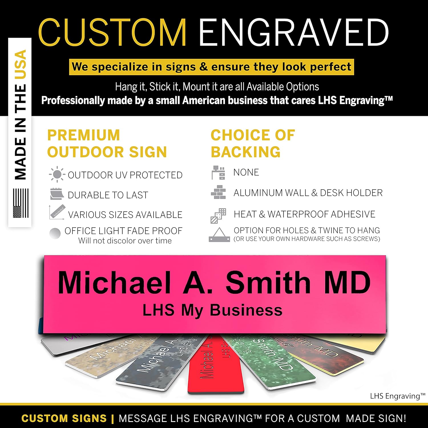 Door Name Plate Personalized for Office Pink Plastic Name Plate Black Letters - Made in USA 2x8 B12