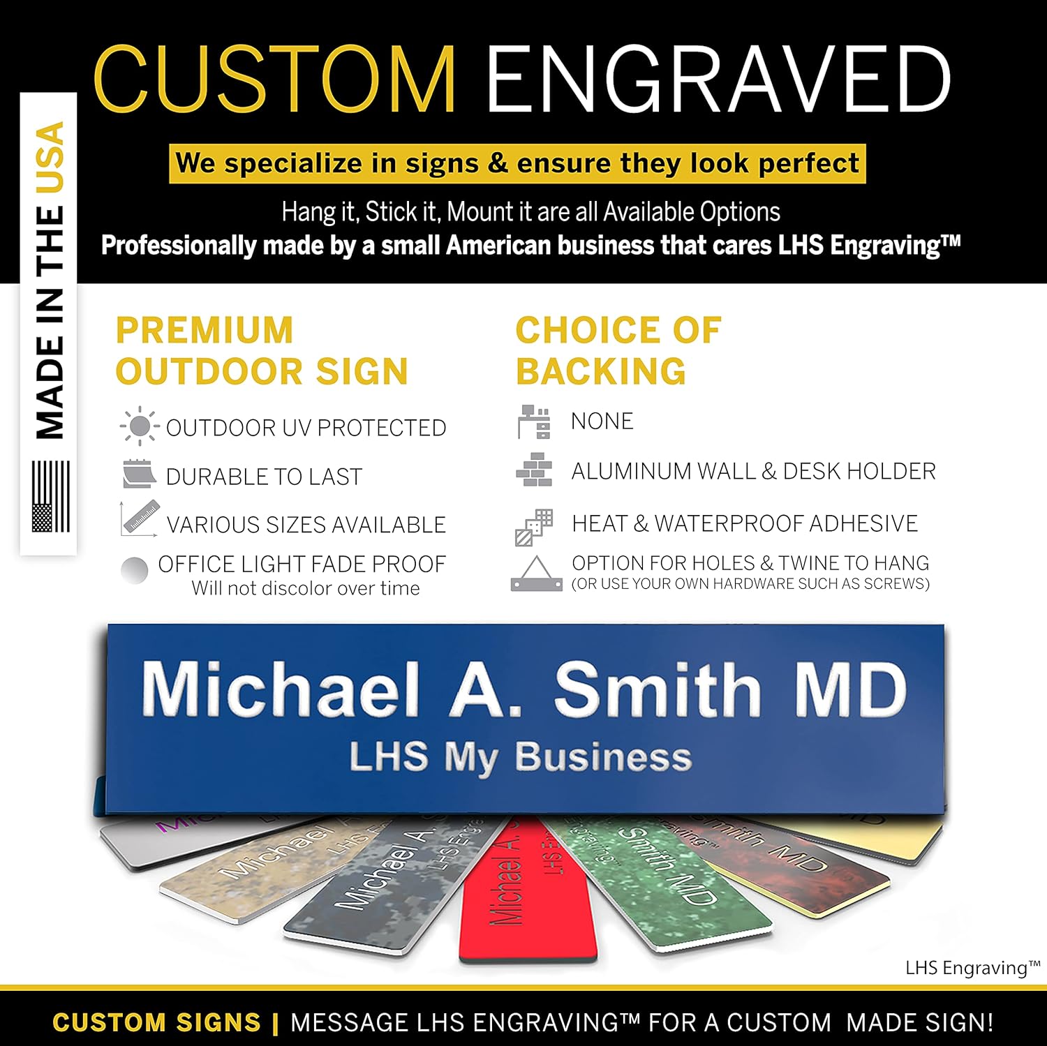 Engraved Name Plates for Door Sign Personalized Blue Plastic Plaque with White Letters - Made in USA 2x12 B9