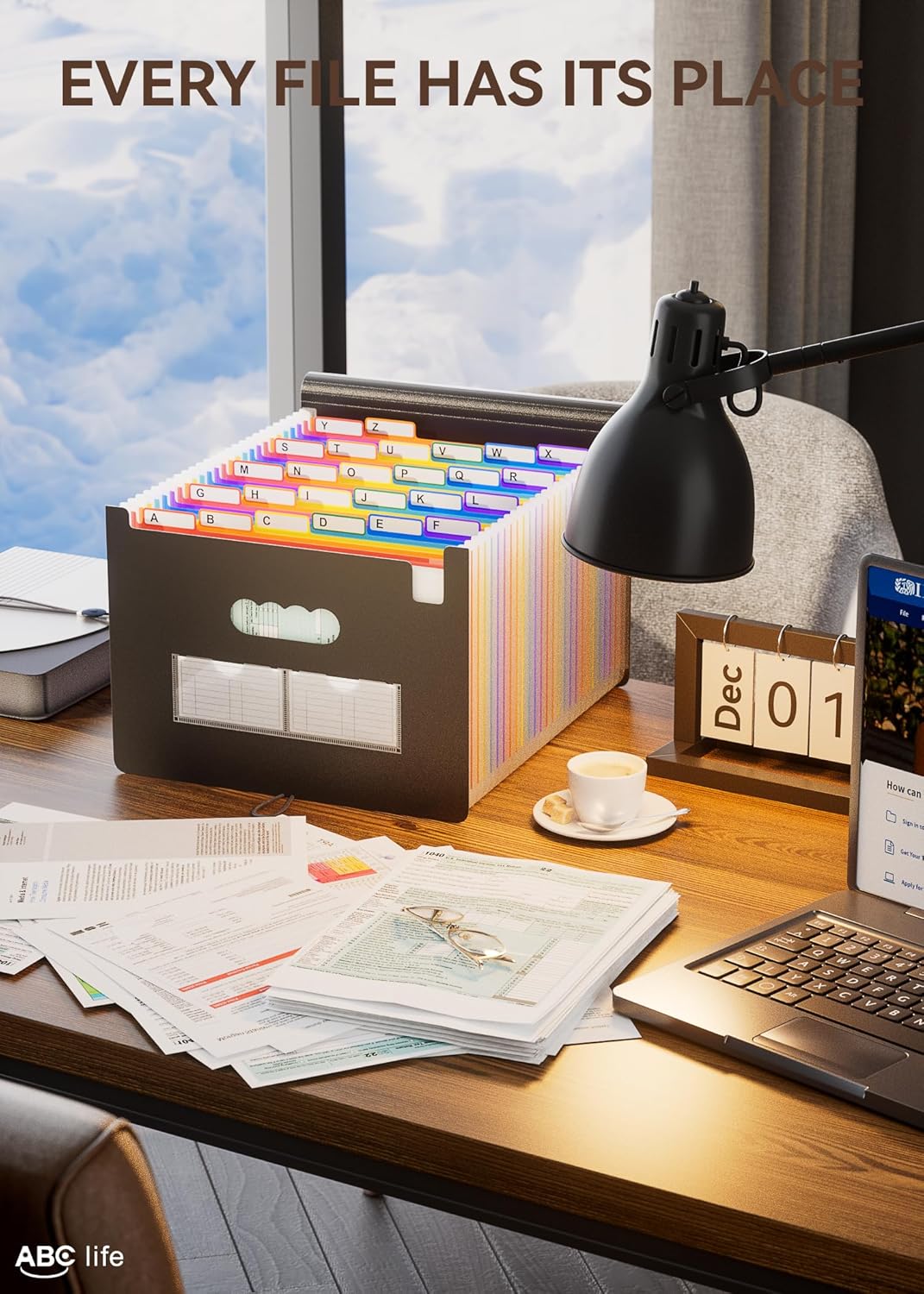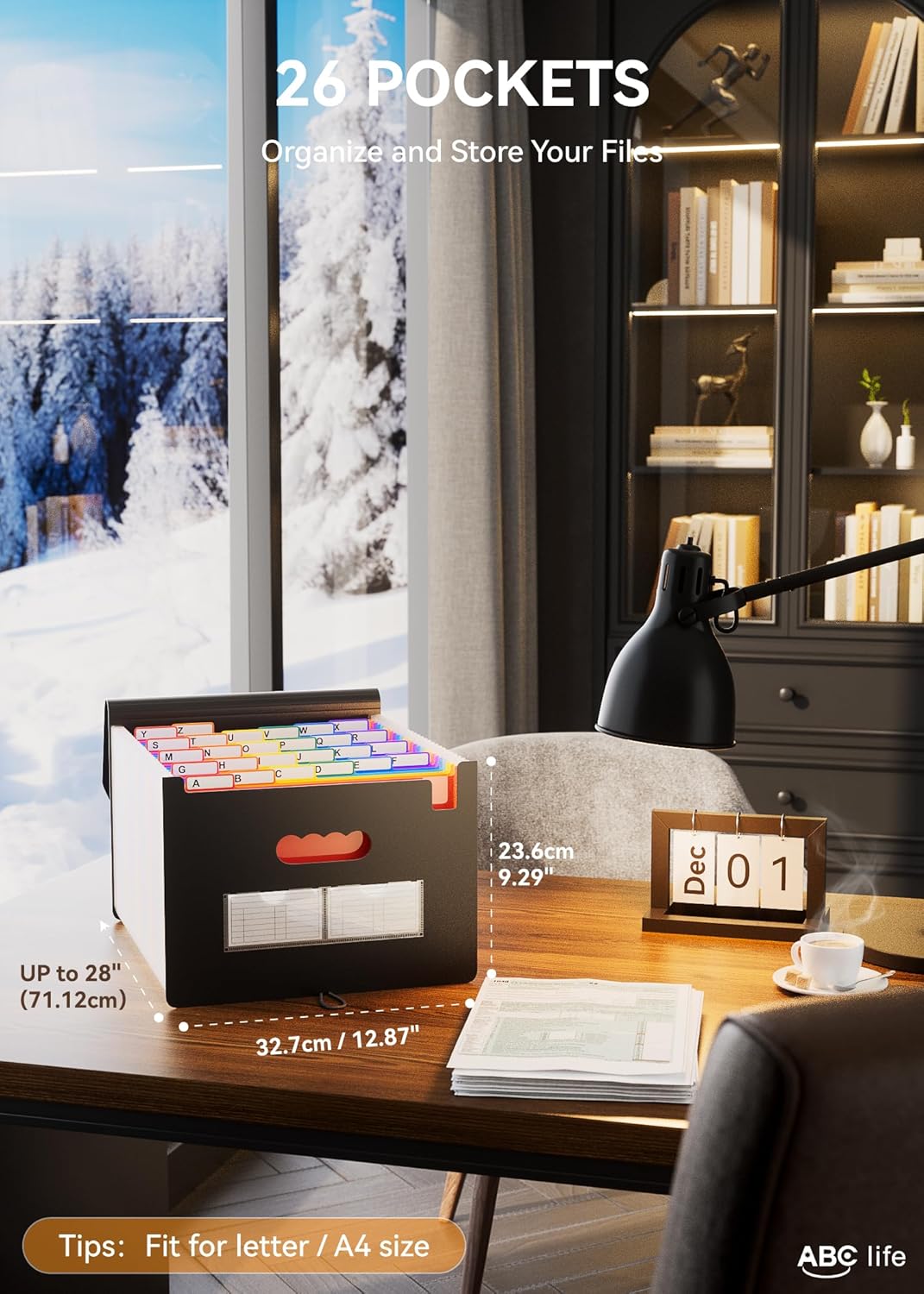- 【26 Expanding File Folder】ABC life pockets accordian file organizer suitable for filing tax and storing important family documents. Product size is 13 "x 9.4"x 28", top and bottom are both expandable, For letter/A4 size files.