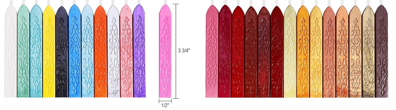 - COMMON SIZES & MULTICOLORS: These wax seals are in size 3 5/8 x 1/2 x 1/2”. They are in 26 different colors that provide you a good selection of colors to match your needs
