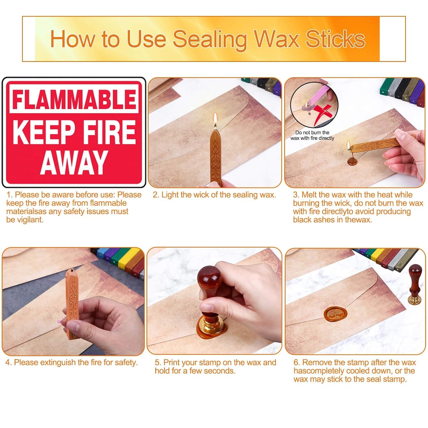 - EASY TO USE: The wax sticks are strong adhesion and hardness that make them easy to form sealing surface with glass objects. These wax seals melt easily and dry quick that are super easy to print, and not easy to break under the external force
