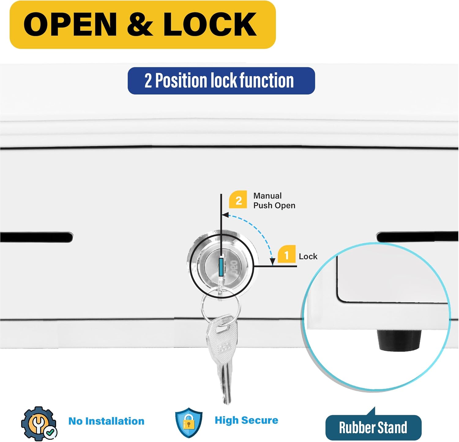 - 📦Stainless Steel Front & Movable Till: This cash drawer not only ensures security but also adds a touch of durability with its Stainless Steel Front. Customize your cash organization with the movable till, providing flexibility to adapt to your business needs.