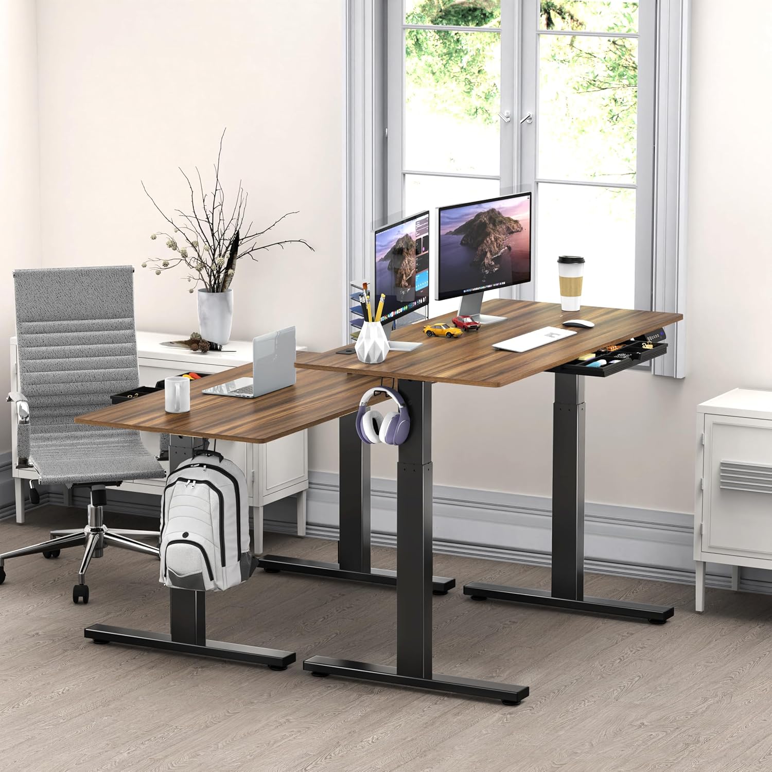 SHW 48-Inch Electric Height Adjustable Standing Desk with Drawer, Memory Preset and Cable Management Tray, Walnut