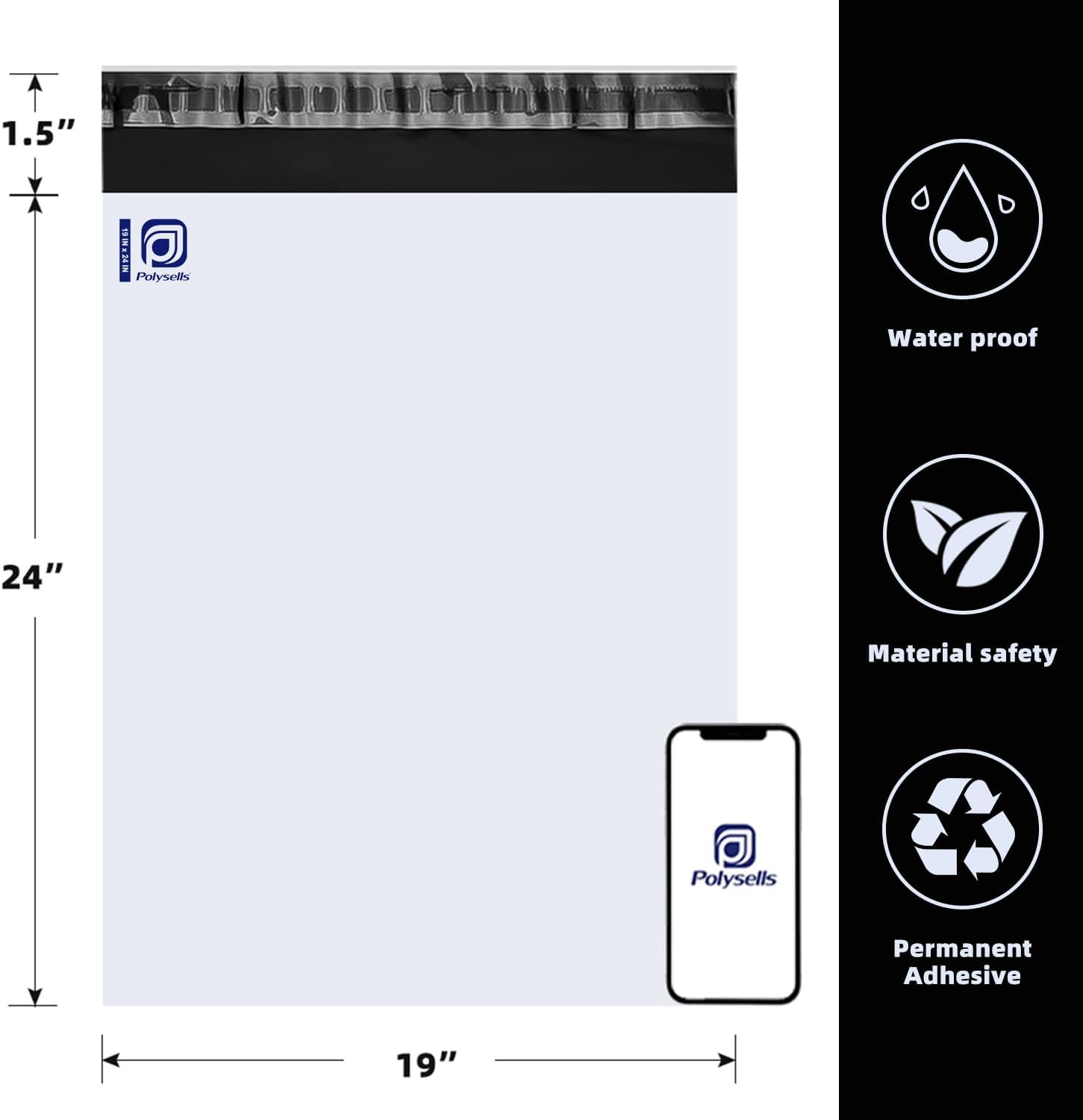 POLYSELLS 100 Pack 19x24 Inch White Poly Mailers Shipping Envelopes, Strong Adhesive Sealing, Waterproof, and Tear-resistant Postal Mailing Bags for Clothing, Books, and Accessories