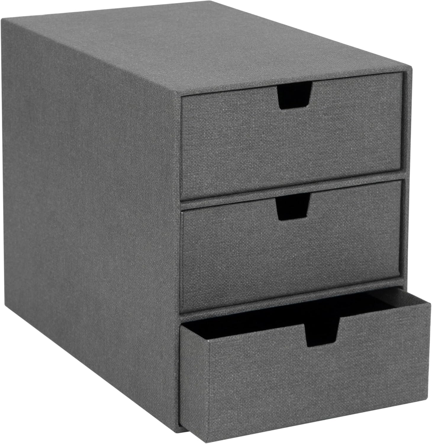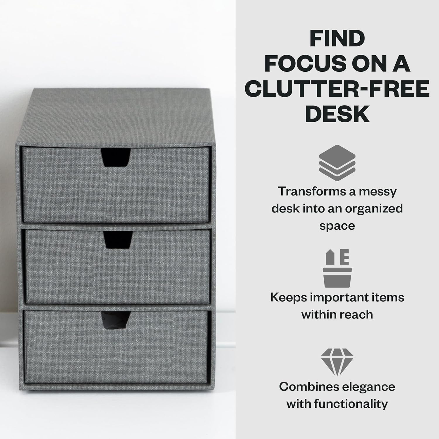 Bigso Box of Sweden Ingrid 3-Drawer Canvas Fiberboard Desk Organizer for Office Supplies and Accessories - Stackable Makeup Drawer Organizer - 6.3in x 9.9in x 8.1in - Grey