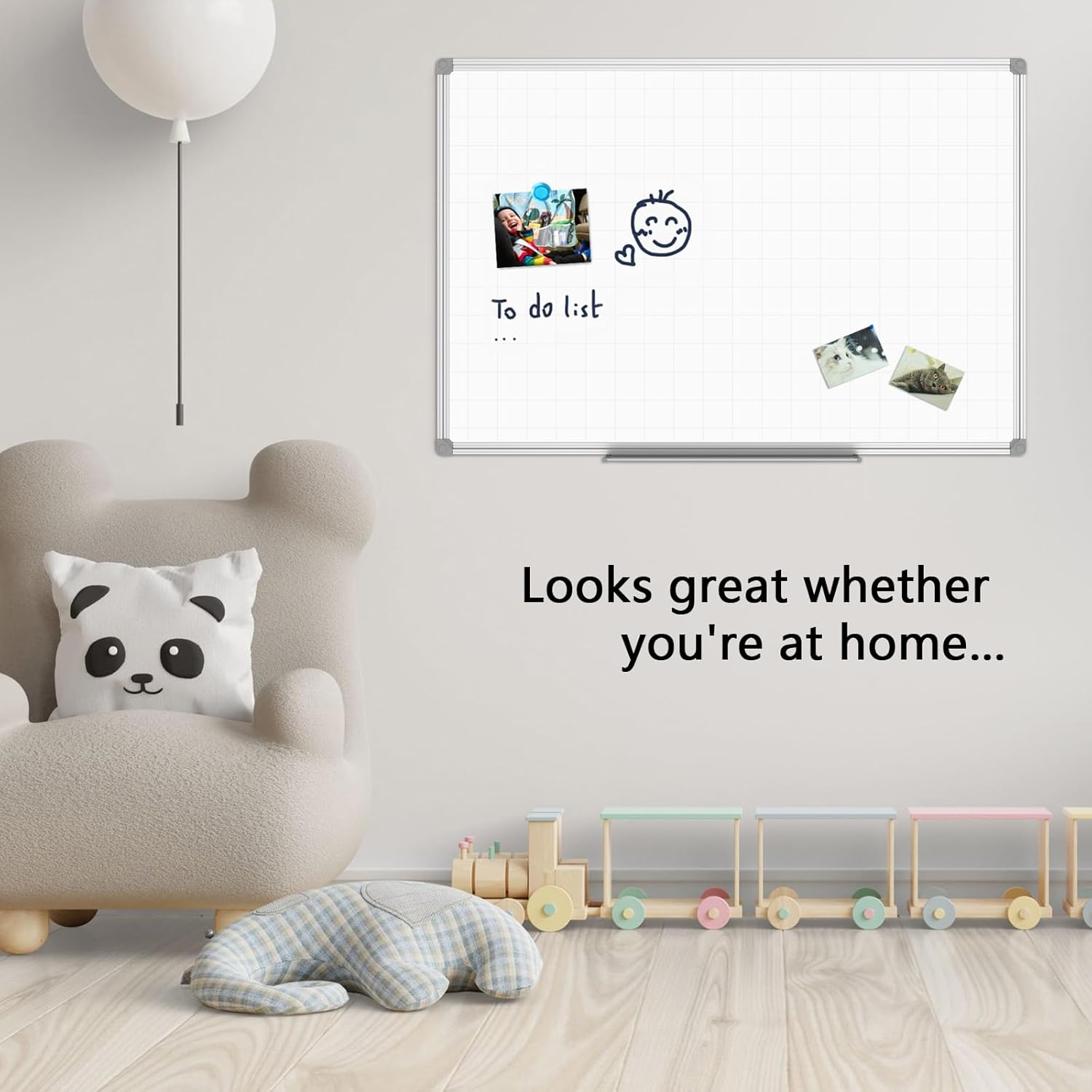 JILoffice Magnetic Dry Erase Planning Board, Grid Pattern White Board 36 x 24 Inch, Silver Aluminum Frame with Detachable Marker Tray for Office School and Home