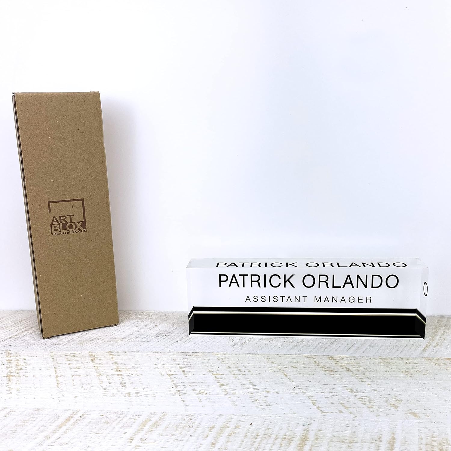 - High Quality - Artblox Custom Sign Personalized Desk Name Plates Are Made Of High-Quality Crystal-clear Acrylic Block. This Office Name Plate Will Stand Out On Any Desk !