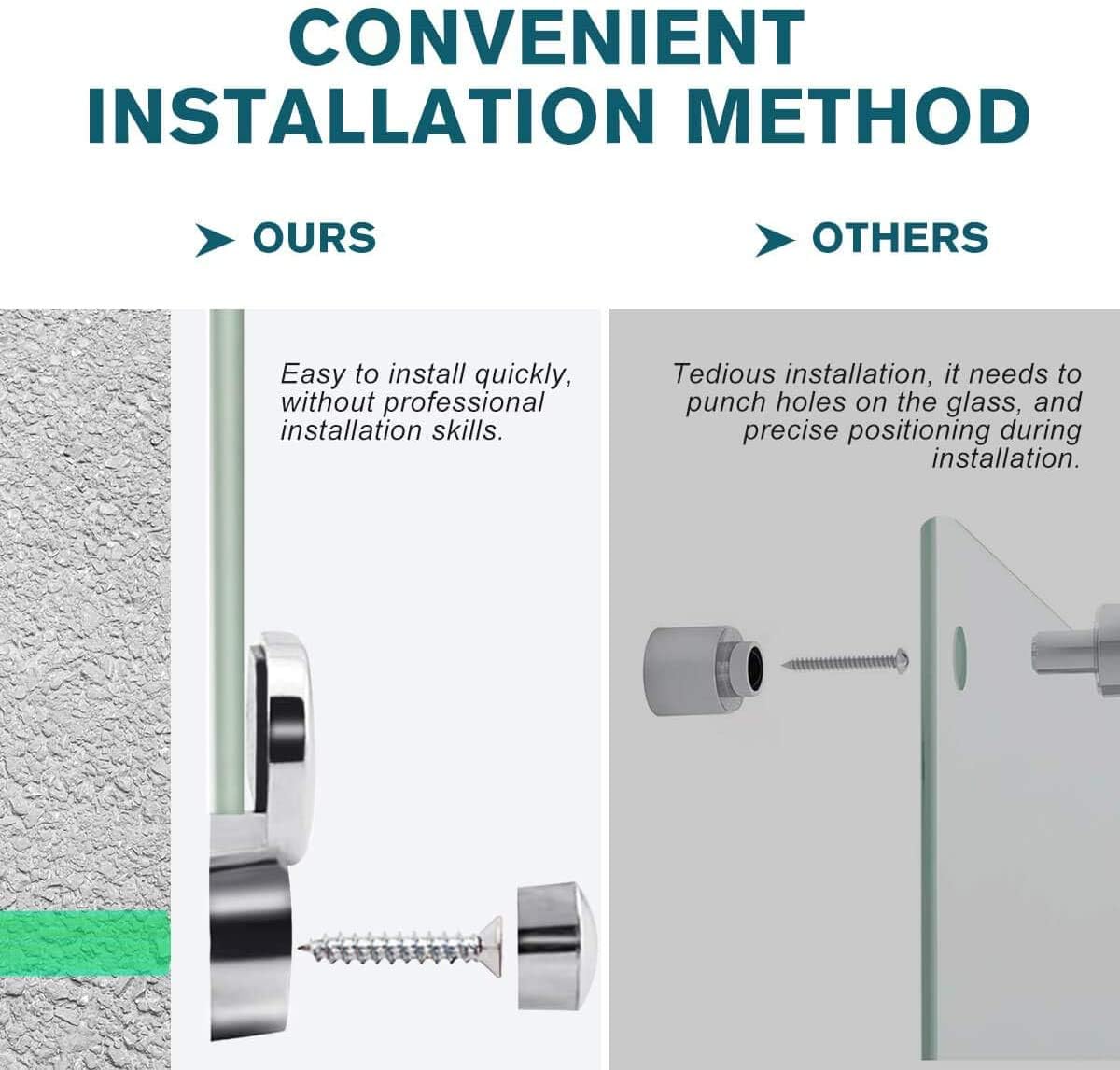 - 【HIGH-QUALITY PARTS】- The anchors, screws, and metal attachment parts were all premium quality, they were made of Zinc alloy, Most importantly, the metal parts were very durable to support the glass board, Moreover, we make the installation easier, which meaning you don't have to hold the board perfectly in place while trying to screw the metal pieces on